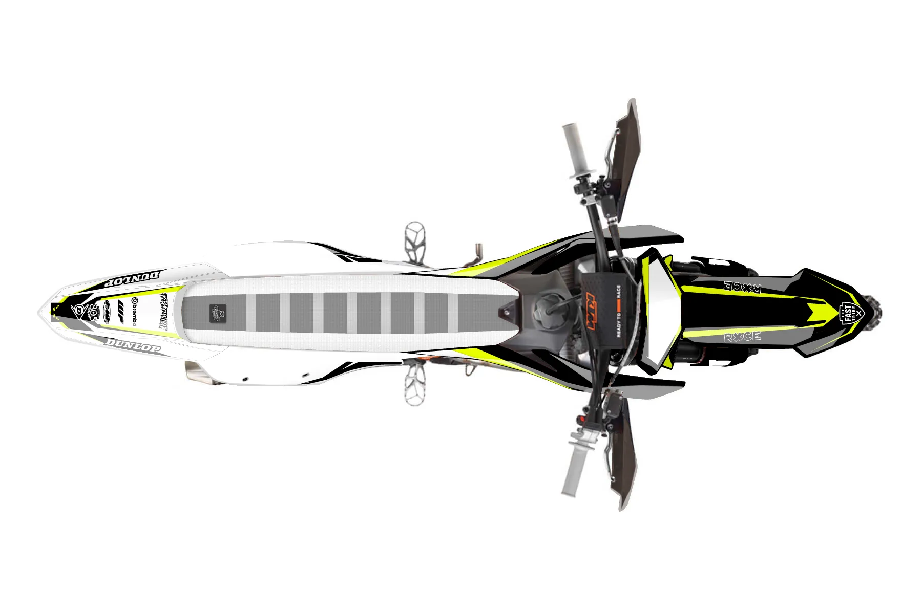 «Swirl Neon» — готовый комплект графики серии Fusion для KTM Offroad Graphic Kit KTM XC-F 450 2023. В комплекте: графика на бак и боковые облицовки, крылья (переднее и заднее), передний щиток, номерные таблички, защита вилки. Материал: ПВХ-винил 80 мкр с холодной ламинацией 300 мкр, общая толщина 380 мкр; покрытие глянцевое или матовое на выбор. Устойчив к UV-излучению, воде, бензину и мойке высокого давления. Клей акриловый на сольвентной основе — постоянный, для гибких пластиков. На простых поверхностях монтируется без нагрева; для сложных изгибов рекомендуем фен. Этот пресет можно заказать как есть или взять за основу в конструкторе: поменять цвета, добавить стартовый номер и свой бренд. Производство — 3–5 рабочих дней, доставка по России СДЭКом или Почтой, по СНГ — курьерскими службами.
