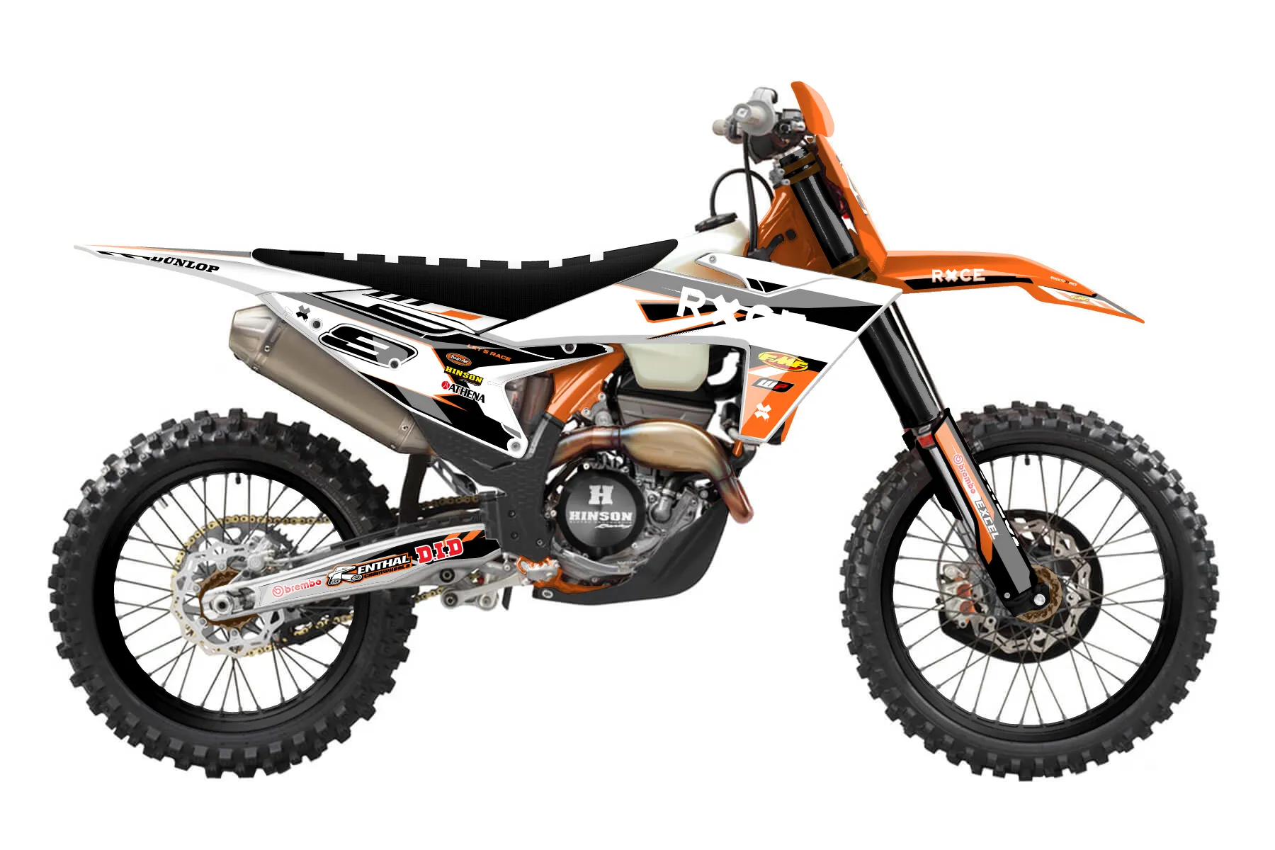 «Club» — готовый комплект графики серии Maverick для KTM Offroad Graphic Kit KTM XC-F 450 2023. В комплекте: графика на бак и боковые облицовки, крылья (переднее и заднее), передний щиток, номерные таблички, защита вилки. Материал: ПВХ-винил 80 мкр с холодной ламинацией 300 мкр, общая толщина 380 мкр; покрытие глянцевое или матовое на выбор. Устойчив к UV-излучению, воде, бензину и мойке высокого давления. Клей акриловый на сольвентной основе — постоянный, для гибких пластиков. На простых поверхностях монтируется без нагрева; для сложных изгибов рекомендуем фен. Этот пресет можно заказать как есть или взять за основу в конструкторе: поменять цвета, добавить стартовый номер и свой бренд. Производство — 3–5 рабочих дней, доставка по России СДЭКом или Почтой, по СНГ — курьерскими службами.