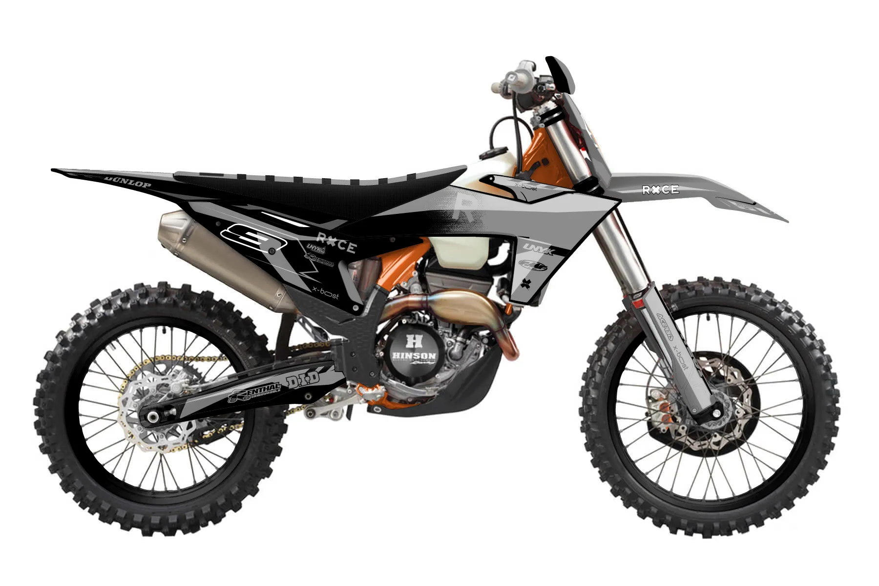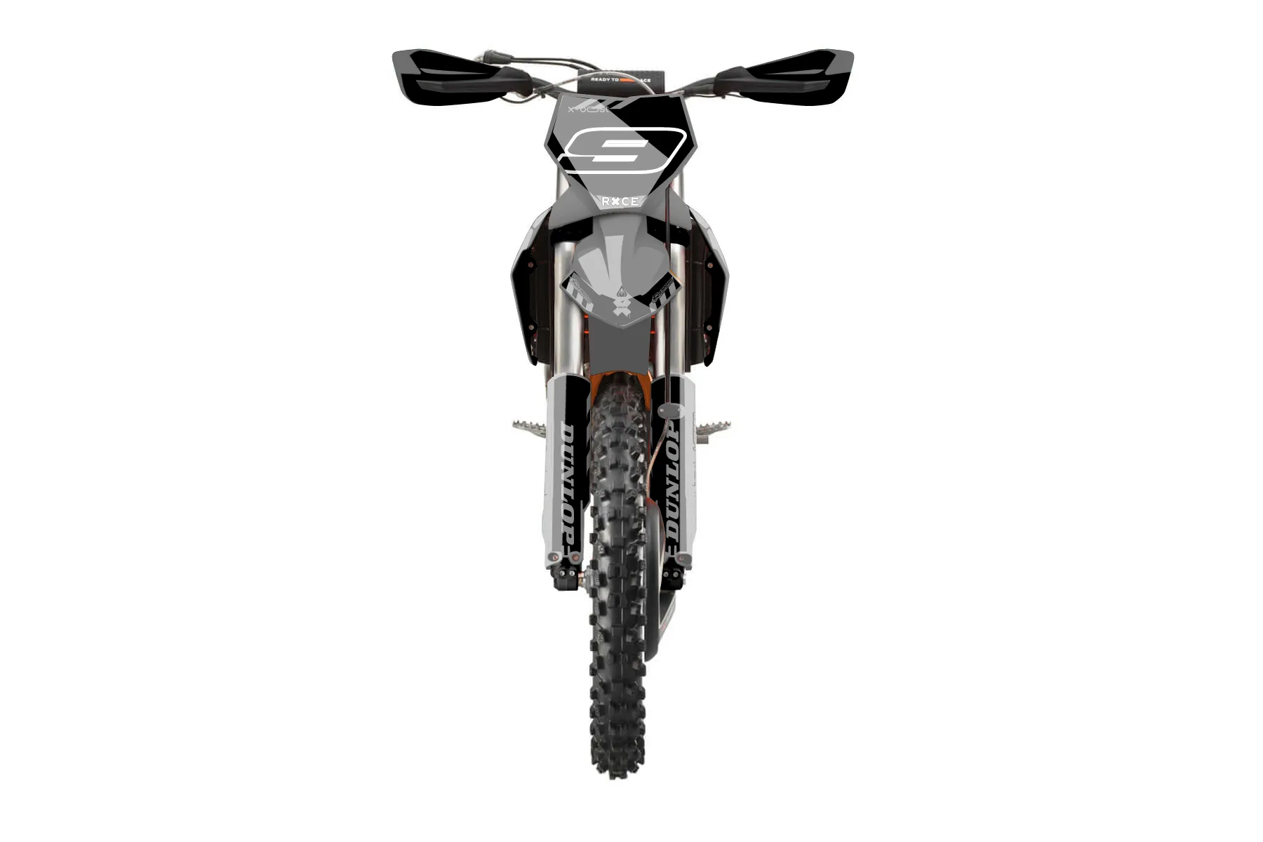«Grip» — готовый комплект графики серии Maverick для KTM Offroad Graphic Kit KTM XC-F 450 2023. В комплекте: графика на бак и боковые облицовки, крылья (переднее и заднее), передний щиток, номерные таблички, защита вилки. Материал: ПВХ-винил 80 мкр с холодной ламинацией 300 мкр, общая толщина 380 мкр; покрытие глянцевое или матовое на выбор. Устойчив к UV-излучению, воде, бензину и мойке высокого давления. Клей акриловый на сольвентной основе — постоянный, для гибких пластиков. На простых поверхностях монтируется без нагрева; для сложных изгибов рекомендуем фен. Этот пресет можно заказать как есть или взять за основу в конструкторе: поменять цвета, добавить стартовый номер и свой бренд. Производство — 3–5 рабочих дней, доставка по России СДЭКом или Почтой, по СНГ — курьерскими службами.