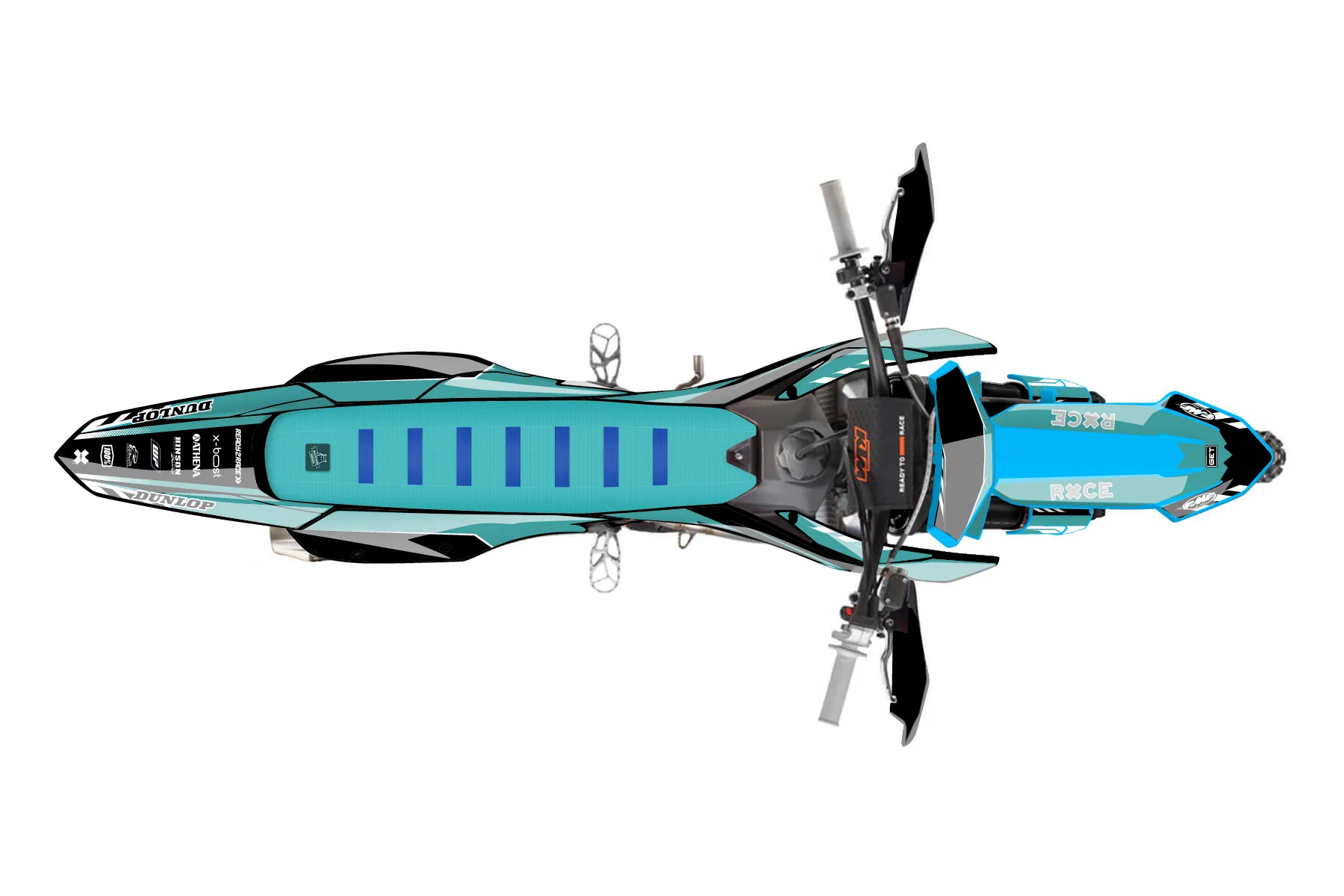 «teal» — готовый комплект графики серии Maverick для KTM Offroad Graphic Kit KTM XC-F 450 2023. В комплекте: графика на бак и боковые облицовки, крылья (переднее и заднее), передний щиток, номерные таблички, защита вилки. Материал: ПВХ-винил 80 мкр с холодной ламинацией 300 мкр, общая толщина 380 мкр; покрытие глянцевое или матовое на выбор. Устойчив к UV-излучению, воде, бензину и мойке высокого давления. Клей акриловый на сольвентной основе — постоянный, для гибких пластиков. На простых поверхностях монтируется без нагрева; для сложных изгибов рекомендуем фен. Этот пресет можно заказать как есть или взять за основу в конструкторе: поменять цвета, добавить стартовый номер и свой бренд. Производство — 3–5 рабочих дней, доставка по России СДЭКом или Почтой, по СНГ — курьерскими службами.