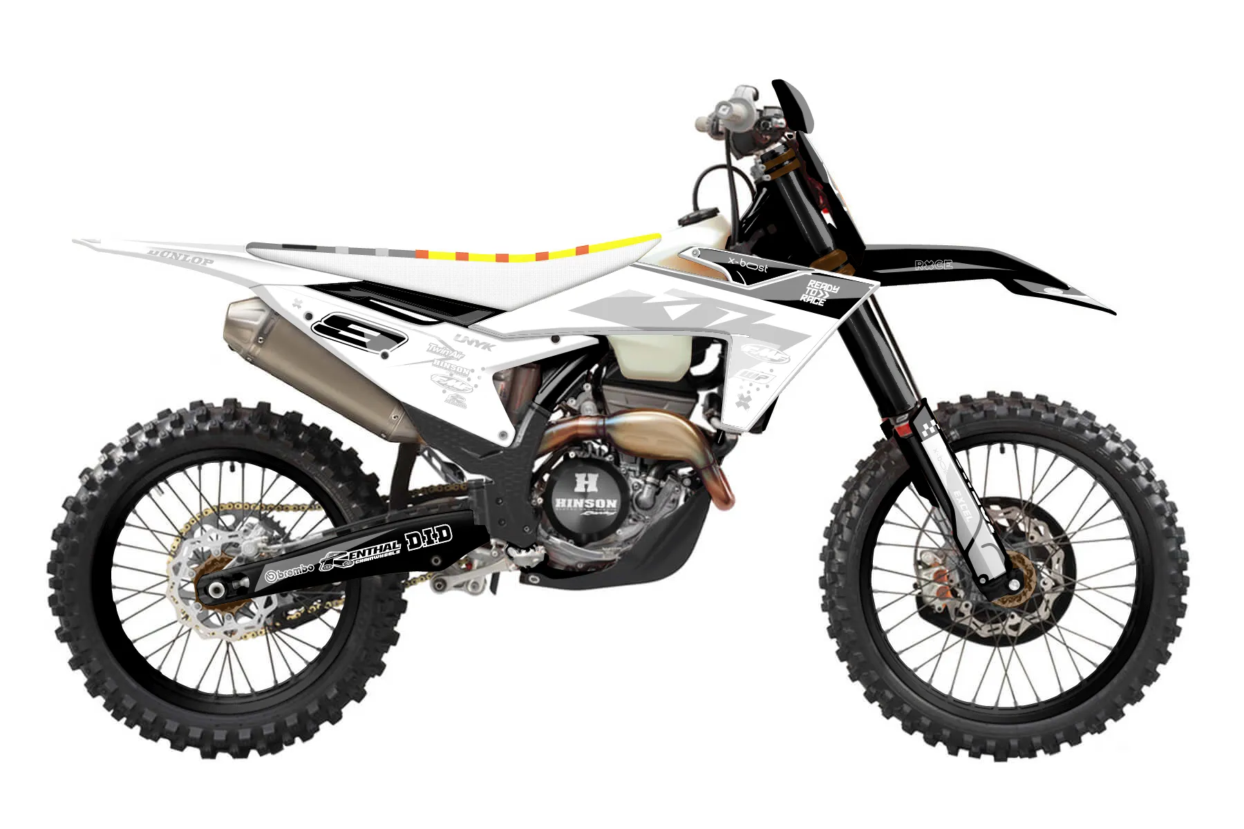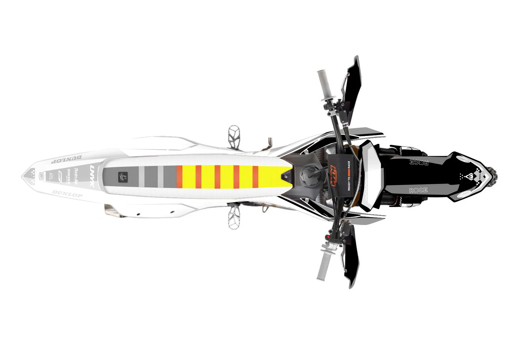«Charge» — готовый комплект графики серии Staple для KTM Offroad Graphic Kit KTM XC-F 450 2023. В комплекте: графика на бак и боковые облицовки, крылья (переднее и заднее), передний щиток, номерные таблички, защита вилки. Материал: ПВХ-винил 80 мкр с холодной ламинацией 300 мкр, общая толщина 380 мкр; покрытие глянцевое или матовое на выбор. Устойчив к UV-излучению, воде, бензину и мойке высокого давления. Клей акриловый на сольвентной основе — постоянный, для гибких пластиков. На простых поверхностях монтируется без нагрева; для сложных изгибов рекомендуем фен. Этот пресет можно заказать как есть или взять за основу в конструкторе: поменять цвета, добавить стартовый номер и свой бренд. Производство — 3–5 рабочих дней, доставка по России СДЭКом или Почтой, по СНГ — курьерскими службами.
