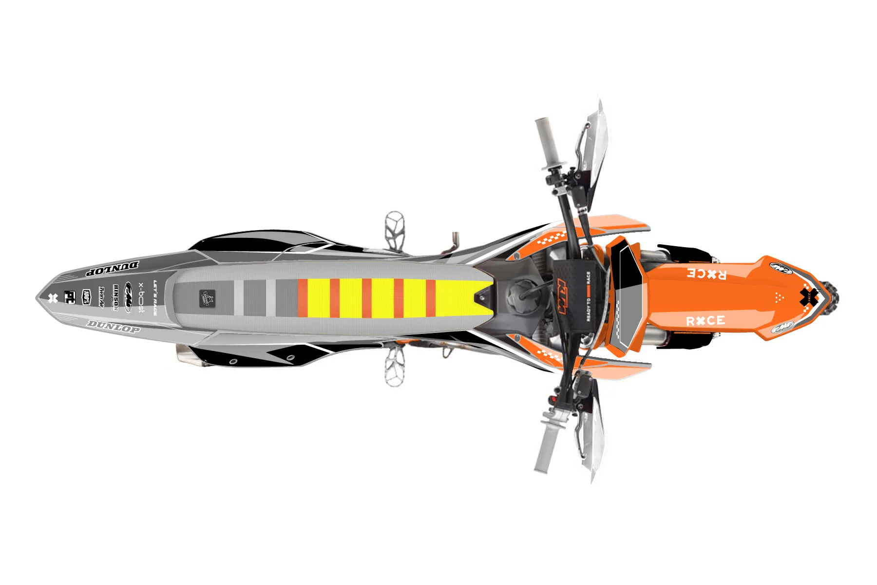 «Craft» — готовый комплект графики серии Staple для KTM Offroad Graphic Kit KTM XC-F 450 2023. В комплекте: графика на бак и боковые облицовки, крылья (переднее и заднее), передний щиток, номерные таблички, защита вилки. Материал: ПВХ-винил 80 мкр с холодной ламинацией 300 мкр, общая толщина 380 мкр; покрытие глянцевое или матовое на выбор. Устойчив к UV-излучению, воде, бензину и мойке высокого давления. Клей акриловый на сольвентной основе — постоянный, для гибких пластиков. На простых поверхностях монтируется без нагрева; для сложных изгибов рекомендуем фен. Этот пресет можно заказать как есть или взять за основу в конструкторе: поменять цвета, добавить стартовый номер и свой бренд. Производство — 3–5 рабочих дней, доставка по России СДЭКом или Почтой, по СНГ — курьерскими службами.