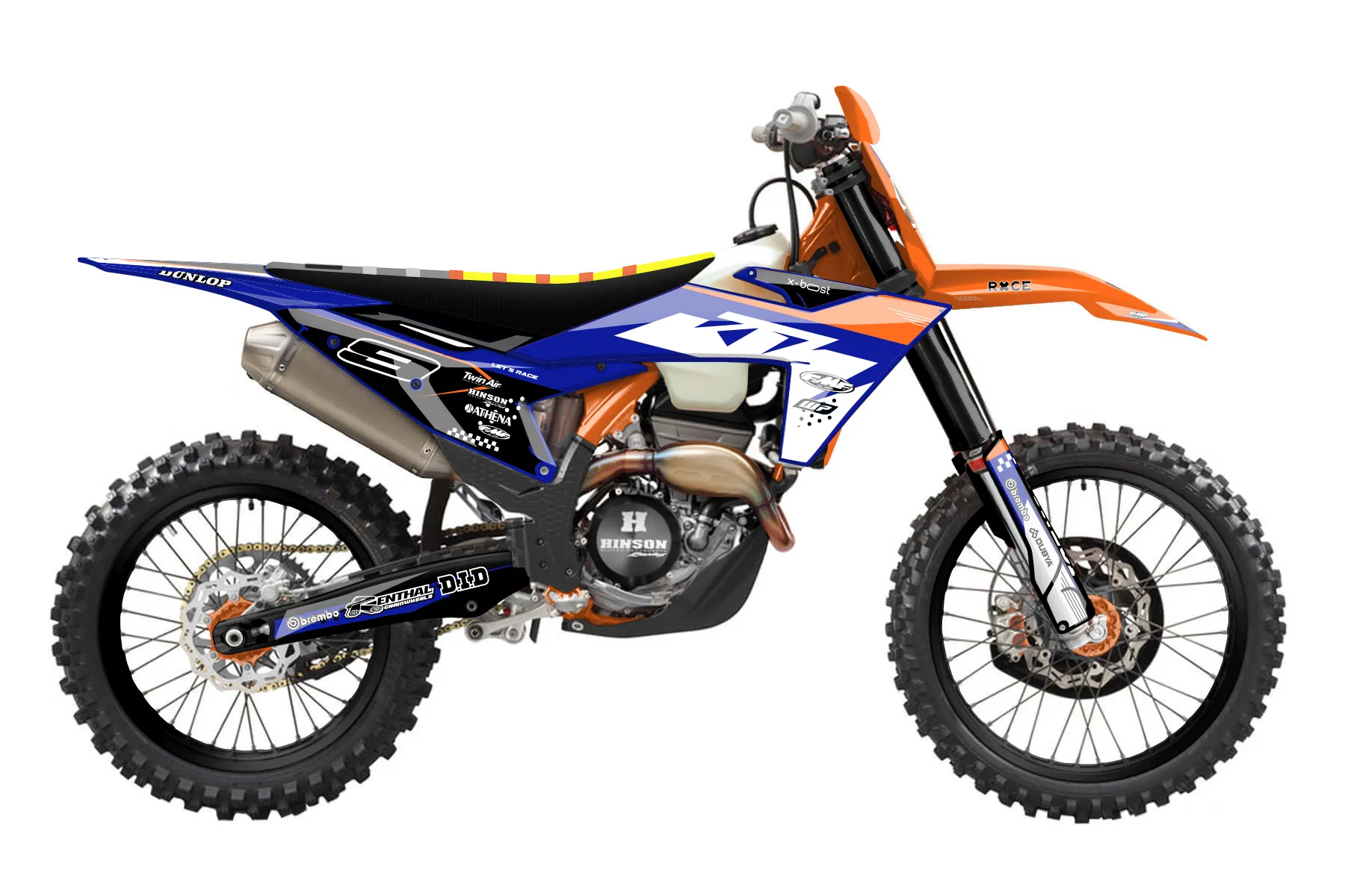 «New Era» — готовый комплект графики серии Staple для KTM Offroad Graphic Kit KTM XC-F 450 2023. В комплекте: графика на бак и боковые облицовки, крылья (переднее и заднее), передний щиток, номерные таблички, защита вилки. Материал: ПВХ-винил 80 мкр с холодной ламинацией 300 мкр, общая толщина 380 мкр; покрытие глянцевое или матовое на выбор. Устойчив к UV-излучению, воде, бензину и мойке высокого давления. Клей акриловый на сольвентной основе — постоянный, для гибких пластиков. На простых поверхностях монтируется без нагрева; для сложных изгибов рекомендуем фен. Этот пресет можно заказать как есть или взять за основу в конструкторе: поменять цвета, добавить стартовый номер и свой бренд. Производство — 3–5 рабочих дней, доставка по России СДЭКом или Почтой, по СНГ — курьерскими службами.