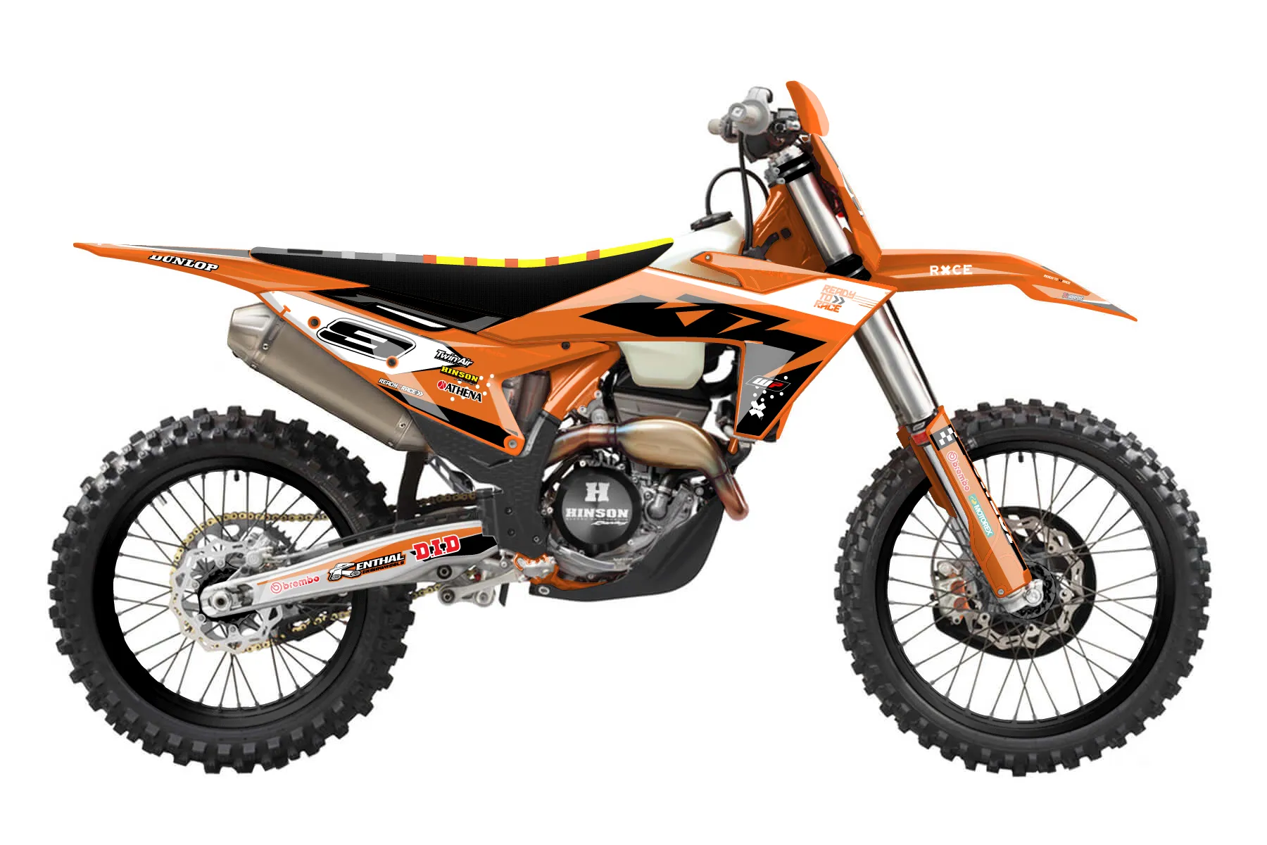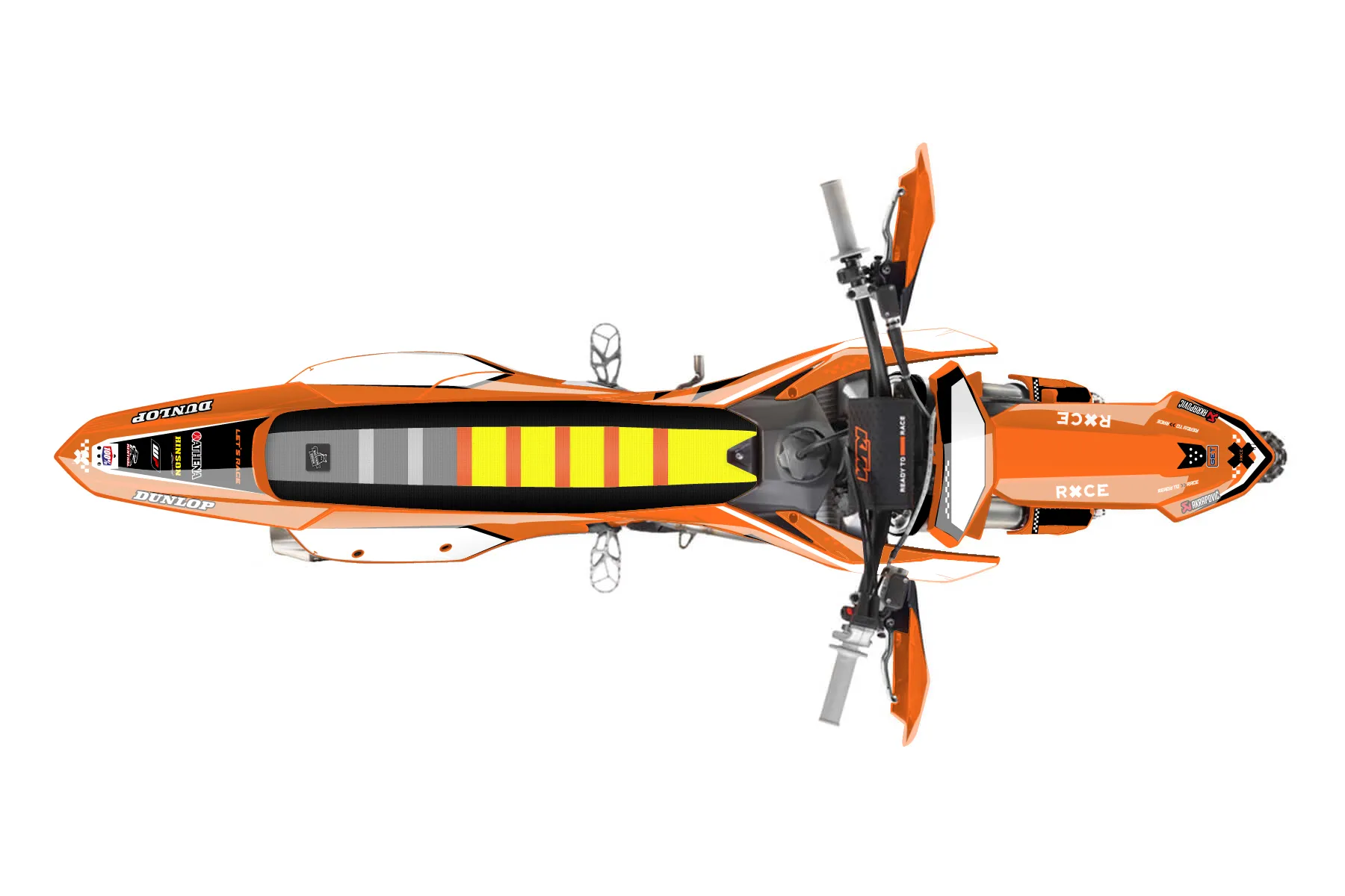 «Raw» — готовый комплект графики серии Staple для KTM Offroad Graphic Kit KTM XC-F 450 2023. В комплекте: графика на бак и боковые облицовки, крылья (переднее и заднее), передний щиток, номерные таблички, защита вилки. Материал: ПВХ-винил 80 мкр с холодной ламинацией 300 мкр, общая толщина 380 мкр; покрытие глянцевое или матовое на выбор. Устойчив к UV-излучению, воде, бензину и мойке высокого давления. Клей акриловый на сольвентной основе — постоянный, для гибких пластиков. На простых поверхностях монтируется без нагрева; для сложных изгибов рекомендуем фен. Этот пресет можно заказать как есть или взять за основу в конструкторе: поменять цвета, добавить стартовый номер и свой бренд. Производство — 3–5 рабочих дней, доставка по России СДЭКом или Почтой, по СНГ — курьерскими службами.