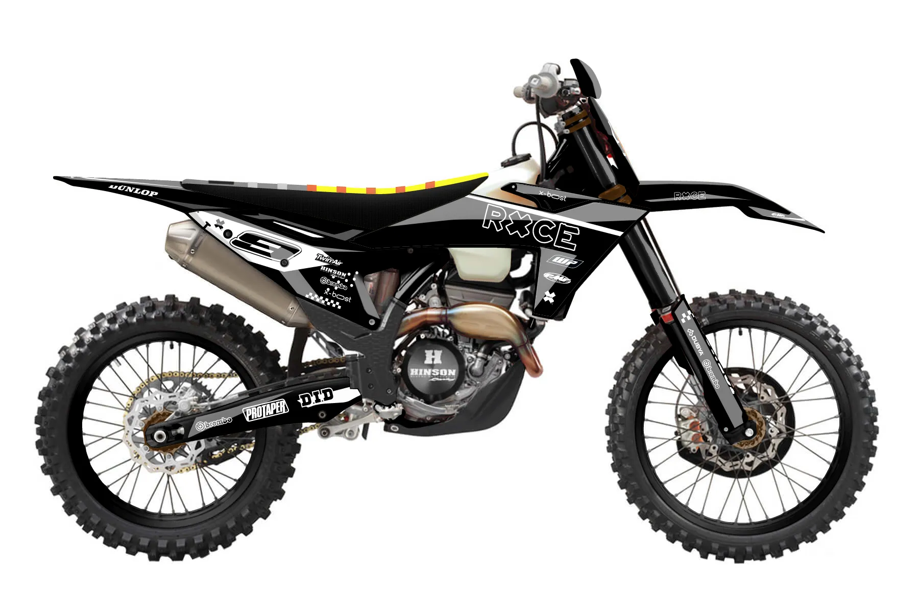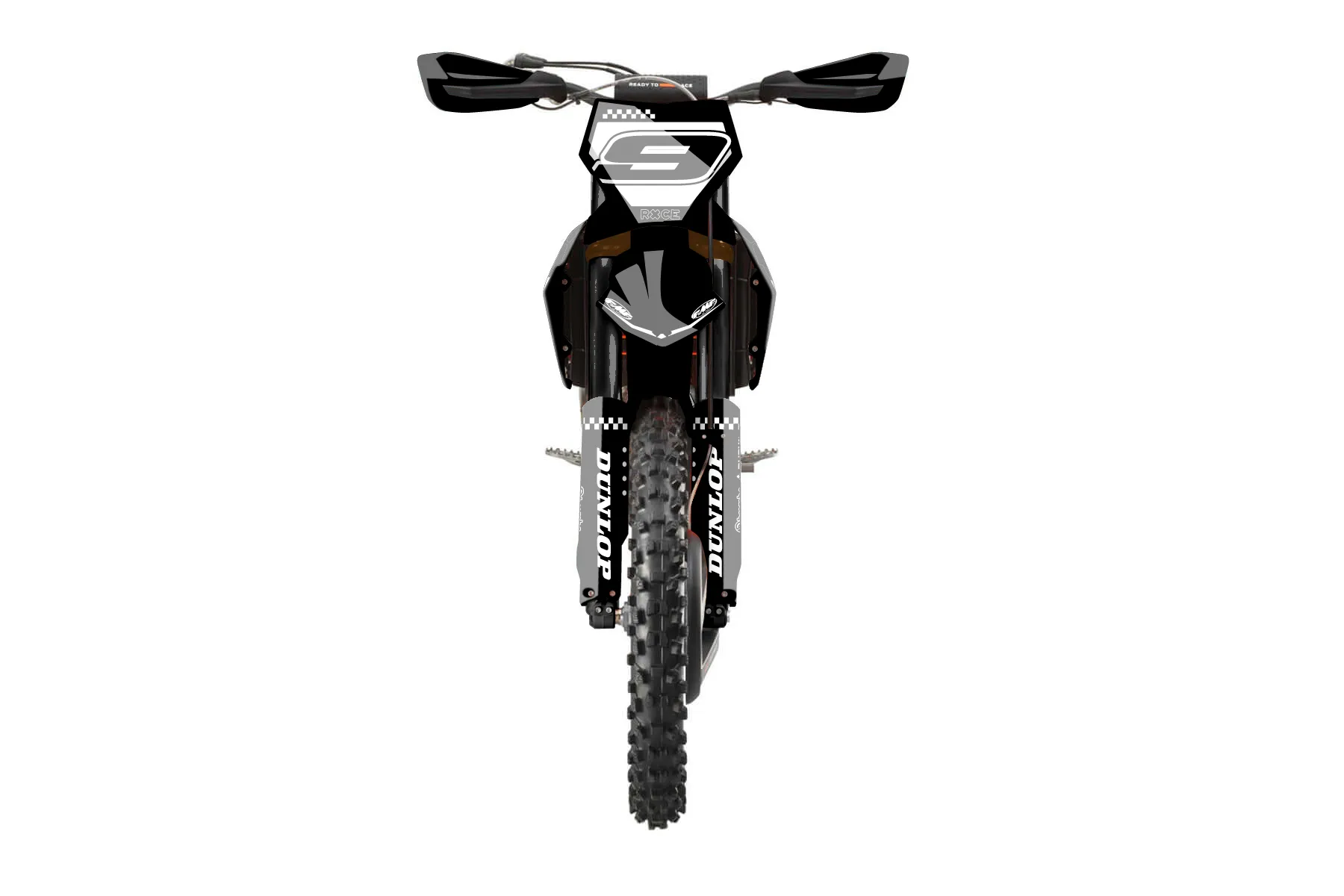 «Ryder» — готовый комплект графики серии Staple для KTM Offroad Graphic Kit KTM XC-F 450 2023. В комплекте: графика на бак и боковые облицовки, крылья (переднее и заднее), передний щиток, номерные таблички, защита вилки. Материал: ПВХ-винил 80 мкр с холодной ламинацией 300 мкр, общая толщина 380 мкр; покрытие глянцевое или матовое на выбор. Устойчив к UV-излучению, воде, бензину и мойке высокого давления. Клей акриловый на сольвентной основе — постоянный, для гибких пластиков. На простых поверхностях монтируется без нагрева; для сложных изгибов рекомендуем фен. Этот пресет можно заказать как есть или взять за основу в конструкторе: поменять цвета, добавить стартовый номер и свой бренд. Производство — 3–5 рабочих дней, доставка по России СДЭКом или Почтой, по СНГ — курьерскими службами.