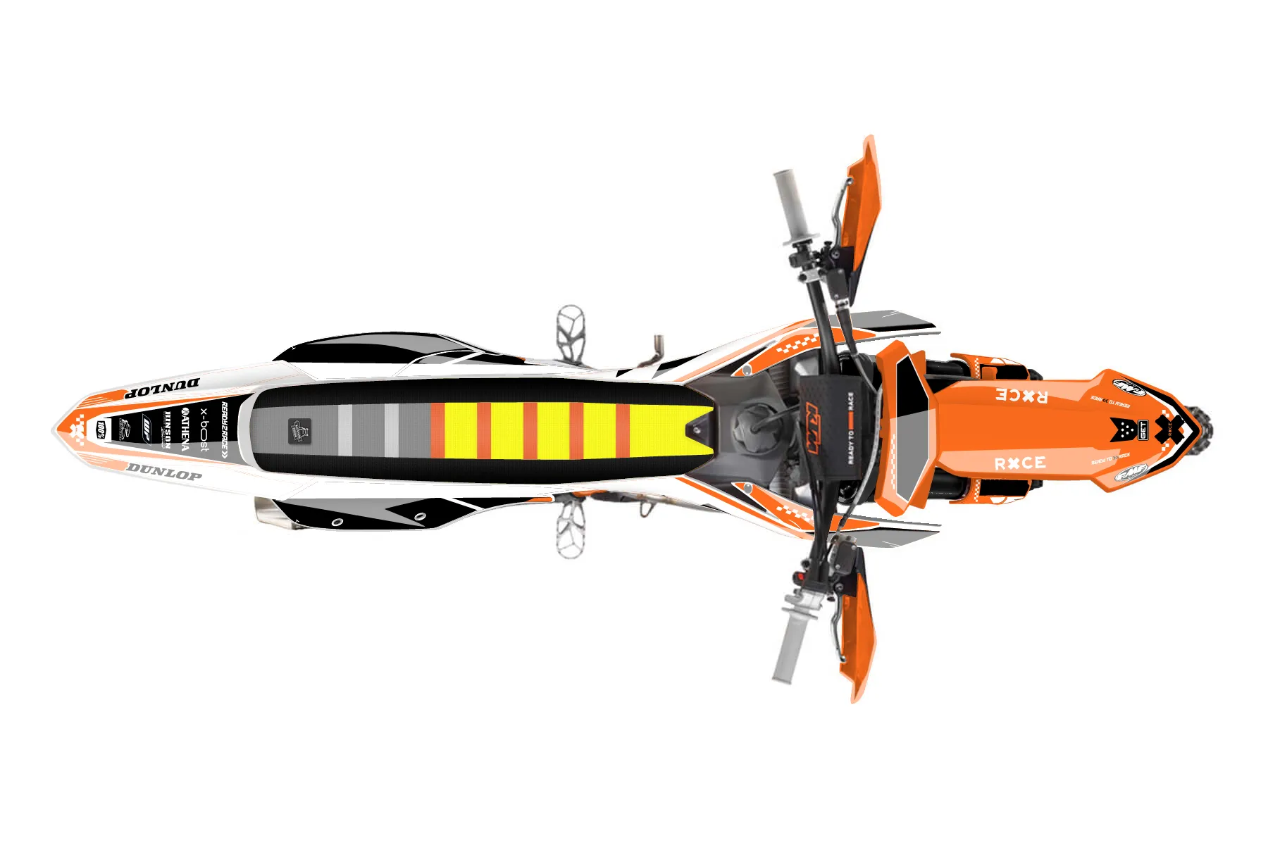 «Warp» — готовый комплект графики серии Staple для KTM Offroad Graphic Kit KTM XC-F 450 2023. В комплекте: графика на бак и боковые облицовки, крылья (переднее и заднее), передний щиток, номерные таблички, защита вилки. Материал: ПВХ-винил 80 мкр с холодной ламинацией 300 мкр, общая толщина 380 мкр; покрытие глянцевое или матовое на выбор. Устойчив к UV-излучению, воде, бензину и мойке высокого давления. Клей акриловый на сольвентной основе — постоянный, для гибких пластиков. На простых поверхностях монтируется без нагрева; для сложных изгибов рекомендуем фен. Этот пресет можно заказать как есть или взять за основу в конструкторе: поменять цвета, добавить стартовый номер и свой бренд. Производство — 3–5 рабочих дней, доставка по России СДЭКом или Почтой, по СНГ — курьерскими службами.