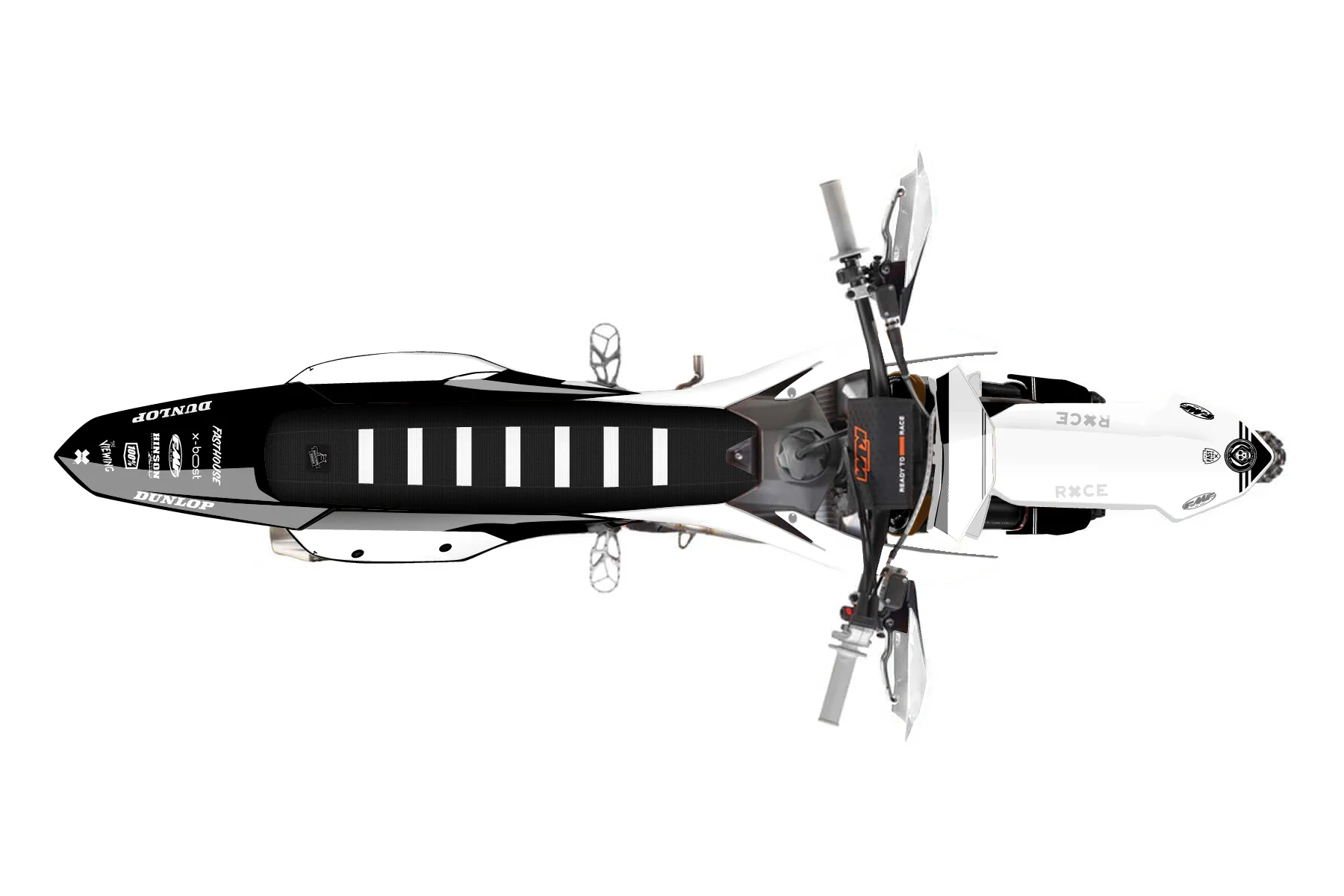 «Clear» — готовый комплект графики серии Untucked для KTM Offroad Graphic Kit KTM XC-F 450 2023. В комплекте: графика на бак и боковые облицовки, крылья (переднее и заднее), передний щиток, номерные таблички, защита вилки. Материал: ПВХ-винил 80 мкр с холодной ламинацией 300 мкр, общая толщина 380 мкр; покрытие глянцевое или матовое на выбор. Устойчив к UV-излучению, воде, бензину и мойке высокого давления. Клей акриловый на сольвентной основе — постоянный, для гибких пластиков. На простых поверхностях монтируется без нагрева; для сложных изгибов рекомендуем фен. Этот пресет можно заказать как есть или взять за основу в конструкторе: поменять цвета, добавить стартовый номер и свой бренд. Производство — 3–5 рабочих дней, доставка по России СДЭКом или Почтой, по СНГ — курьерскими службами.