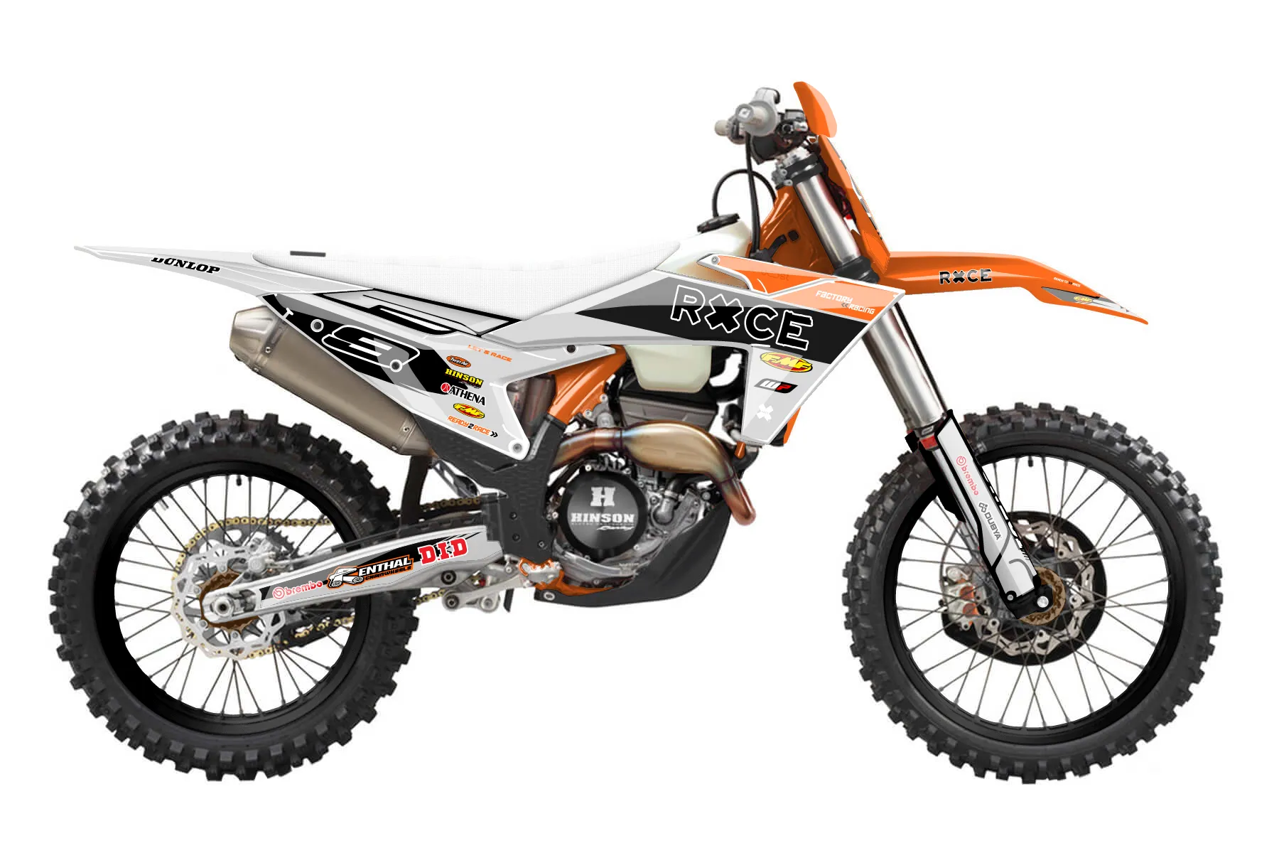 «Illusison» — готовый комплект графики серии Untucked для KTM Offroad Graphic Kit KTM XC-F 450 2023. В комплекте: графика на бак и боковые облицовки, крылья (переднее и заднее), передний щиток, номерные таблички, защита вилки. Материал: ПВХ-винил 80 мкр с холодной ламинацией 300 мкр, общая толщина 380 мкр; покрытие глянцевое или матовое на выбор. Устойчив к UV-излучению, воде, бензину и мойке высокого давления. Клей акриловый на сольвентной основе — постоянный, для гибких пластиков. На простых поверхностях монтируется без нагрева; для сложных изгибов рекомендуем фен. Этот пресет можно заказать как есть или взять за основу в конструкторе: поменять цвета, добавить стартовый номер и свой бренд. Производство — 3–5 рабочих дней, доставка по России СДЭКом или Почтой, по СНГ — курьерскими службами.
