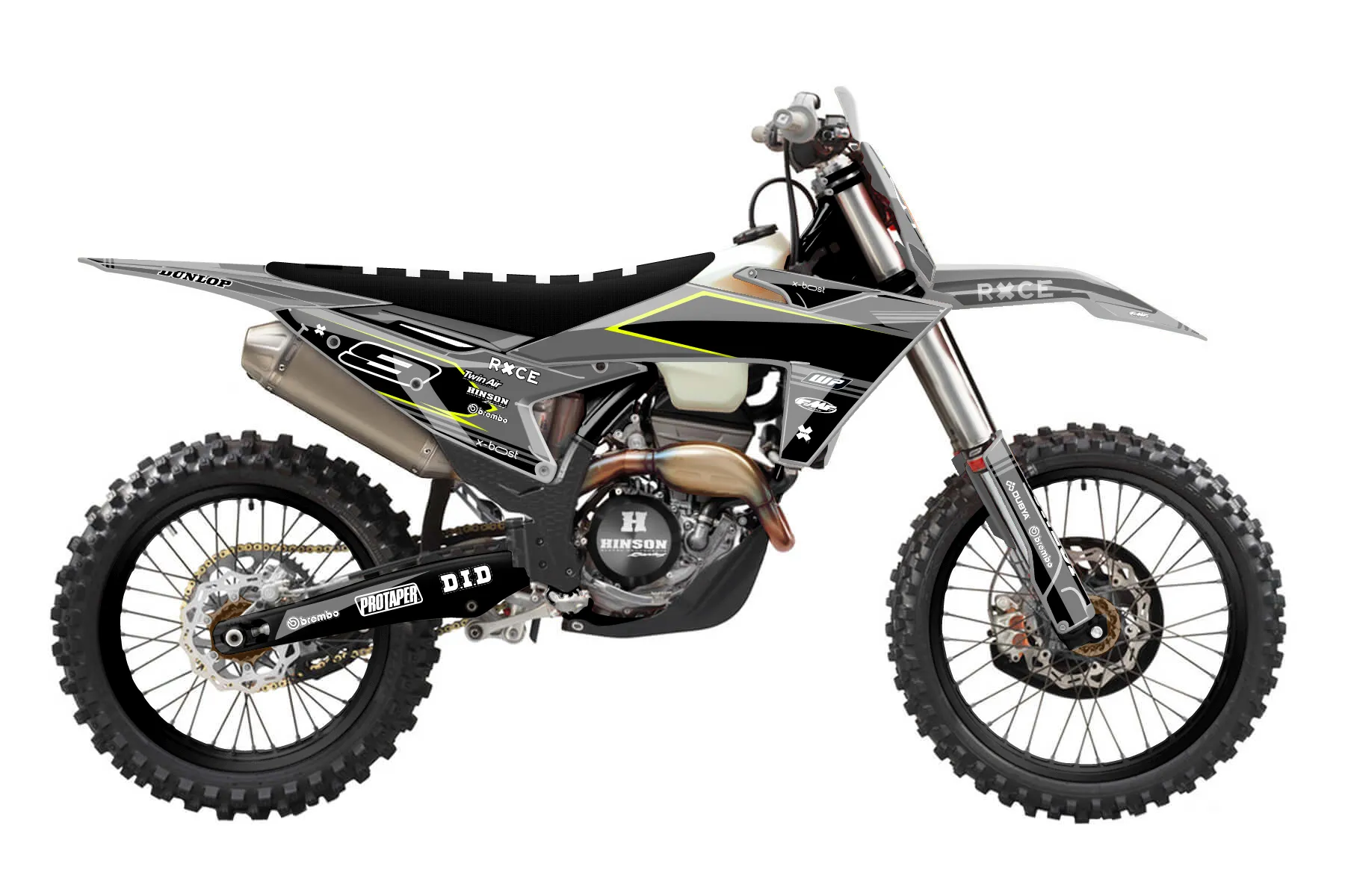 «Warp Neon» — готовый комплект графики серии Untucked для KTM Offroad Graphic Kit KTM XC-F 450 2023. В комплекте: графика на бак и боковые облицовки, крылья (переднее и заднее), передний щиток, номерные таблички, защита вилки. Материал: ПВХ-винил 80 мкр с холодной ламинацией 300 мкр, общая толщина 380 мкр; покрытие глянцевое или матовое на выбор. Устойчив к UV-излучению, воде, бензину и мойке высокого давления. Клей акриловый на сольвентной основе — постоянный, для гибких пластиков. На простых поверхностях монтируется без нагрева; для сложных изгибов рекомендуем фен. Этот пресет можно заказать как есть или взять за основу в конструкторе: поменять цвета, добавить стартовый номер и свой бренд. Производство — 3–5 рабочих дней, доставка по России СДЭКом или Почтой, по СНГ — курьерскими службами.