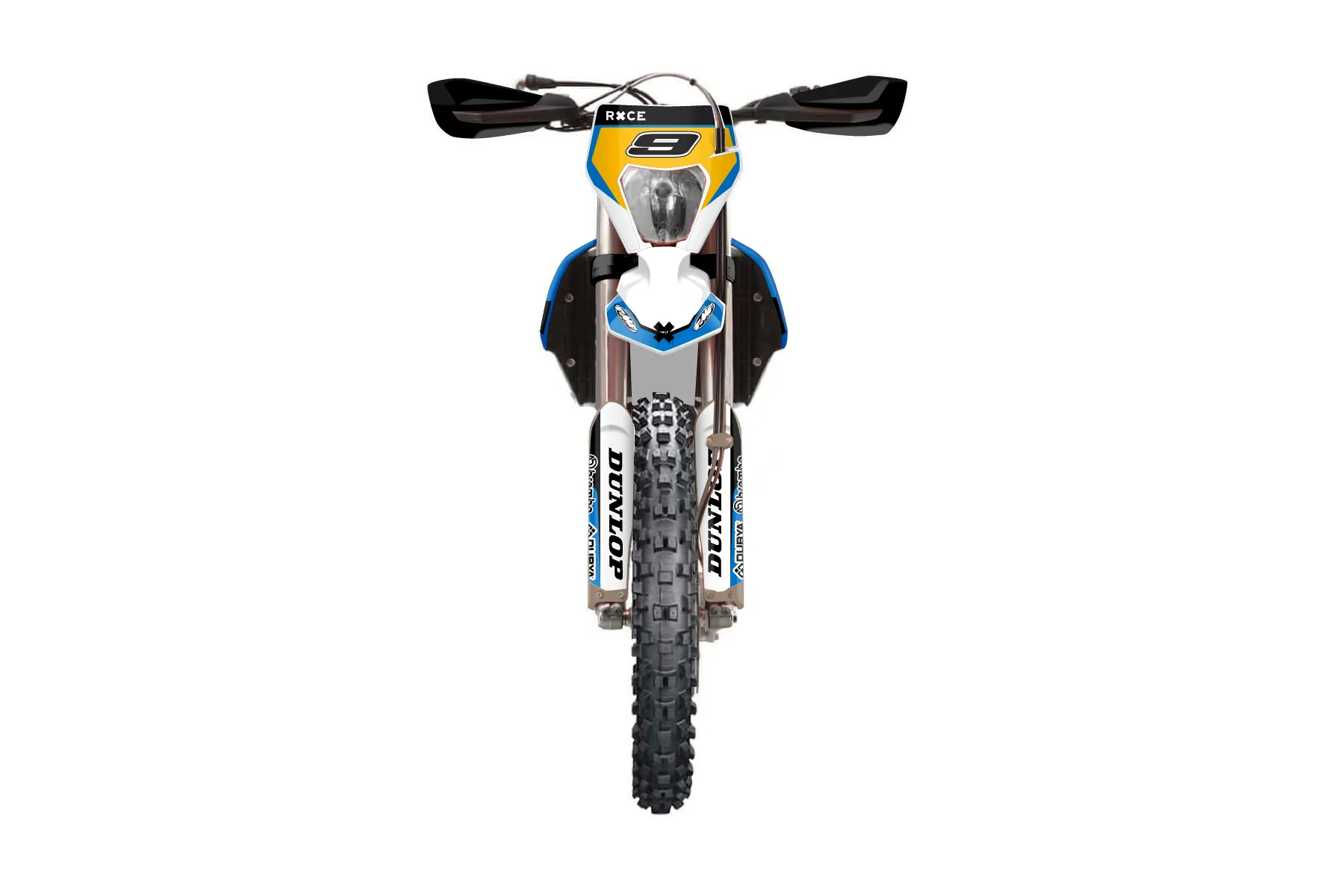 «All-Star» — готовый комплект графики серии Flow для KTM Enduro Graphic Kit KTM XCF-W 450 2022. В комплекте: графика на бак и боковые облицовки, крылья (переднее и заднее), передний щиток, номерные таблички, защита вилки. Материал: ПВХ-винил 80 мкр с холодной ламинацией 300 мкр, общая толщина 380 мкр; покрытие глянцевое или матовое на выбор. Устойчив к UV-излучению, воде, бензину и мойке высокого давления. Клей акриловый на сольвентной основе — постоянный, для гибких пластиков. На простых поверхностях монтируется без нагрева; для сложных изгибов рекомендуем фен. Этот пресет можно заказать как есть или взять за основу в конструкторе: поменять цвета, добавить стартовый номер и свой бренд. Производство — 3–5 рабочих дней, доставка по России СДЭКом или Почтой, по СНГ — курьерскими службами.