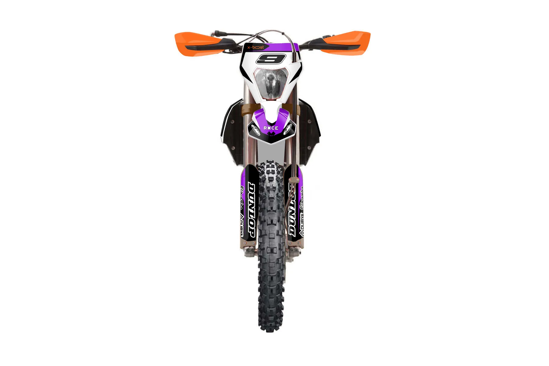 «CustomDesign» — готовый комплект графики серии Flow для KTM Enduro Graphic Kit KTM XCF-W 450 2022. В комплекте: графика на бак и боковые облицовки, крылья (переднее и заднее), передний щиток, номерные таблички, защита вилки. Материал: ПВХ-винил 80 мкр с холодной ламинацией 300 мкр, общая толщина 380 мкр; покрытие глянцевое или матовое на выбор. Устойчив к UV-излучению, воде, бензину и мойке высокого давления. Клей акриловый на сольвентной основе — постоянный, для гибких пластиков. На простых поверхностях монтируется без нагрева; для сложных изгибов рекомендуем фен. Этот пресет можно заказать как есть или взять за основу в конструкторе: поменять цвета, добавить стартовый номер и свой бренд. Производство — 3–5 рабочих дней, доставка по России СДЭКом или Почтой, по СНГ — курьерскими службами.