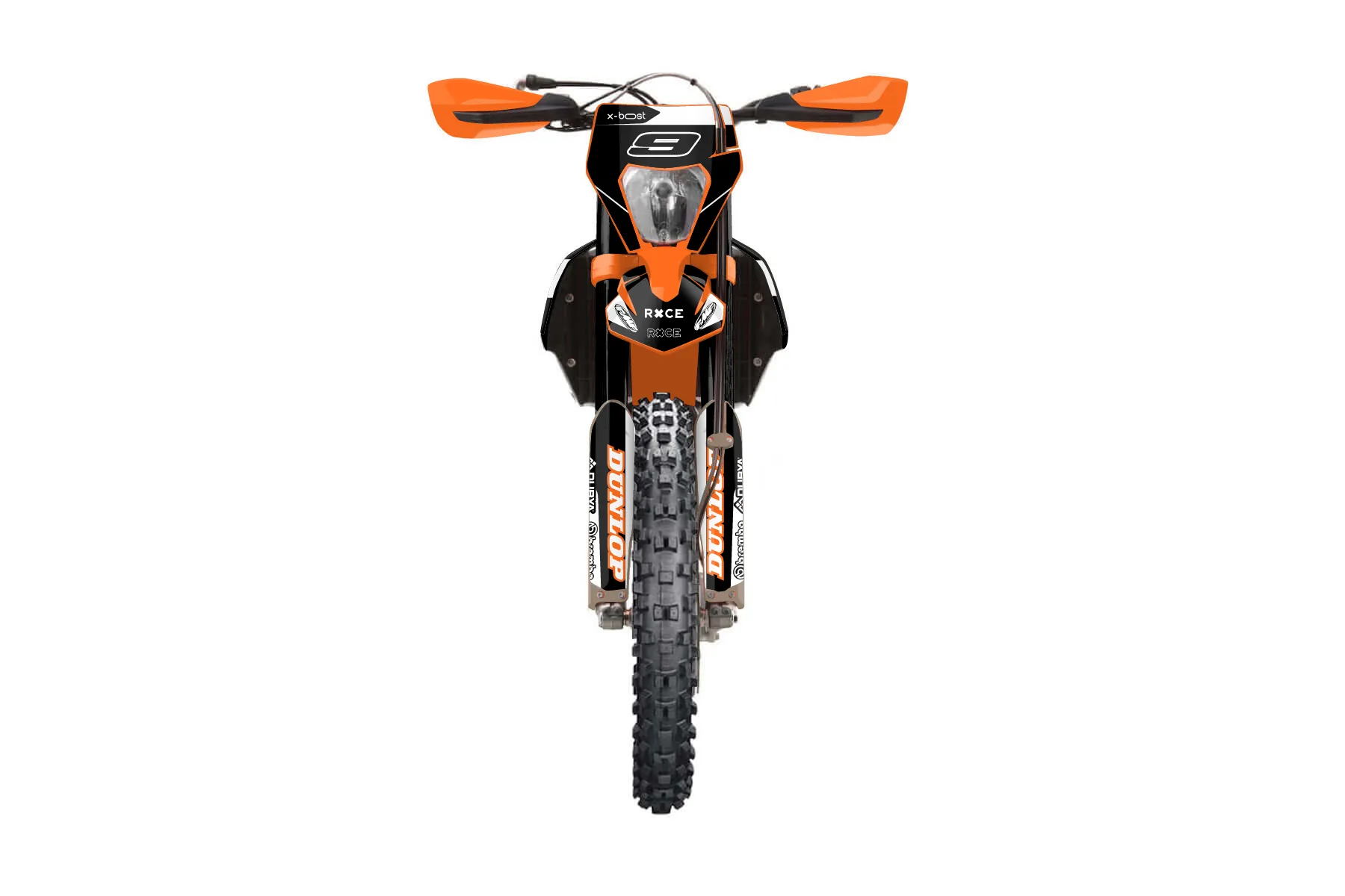 «Race» — готовый комплект графики серии Flow для KTM Enduro Graphic Kit KTM XCF-W 450 2022. В комплекте: графика на бак и боковые облицовки, крылья (переднее и заднее), передний щиток, номерные таблички, защита вилки. Материал: ПВХ-винил 80 мкр с холодной ламинацией 300 мкр, общая толщина 380 мкр; покрытие глянцевое или матовое на выбор. Устойчив к UV-излучению, воде, бензину и мойке высокого давления. Клей акриловый на сольвентной основе — постоянный, для гибких пластиков. На простых поверхностях монтируется без нагрева; для сложных изгибов рекомендуем фен. Этот пресет можно заказать как есть или взять за основу в конструкторе: поменять цвета, добавить стартовый номер и свой бренд. Производство — 3–5 рабочих дней, доставка по России СДЭКом или Почтой, по СНГ — курьерскими службами.