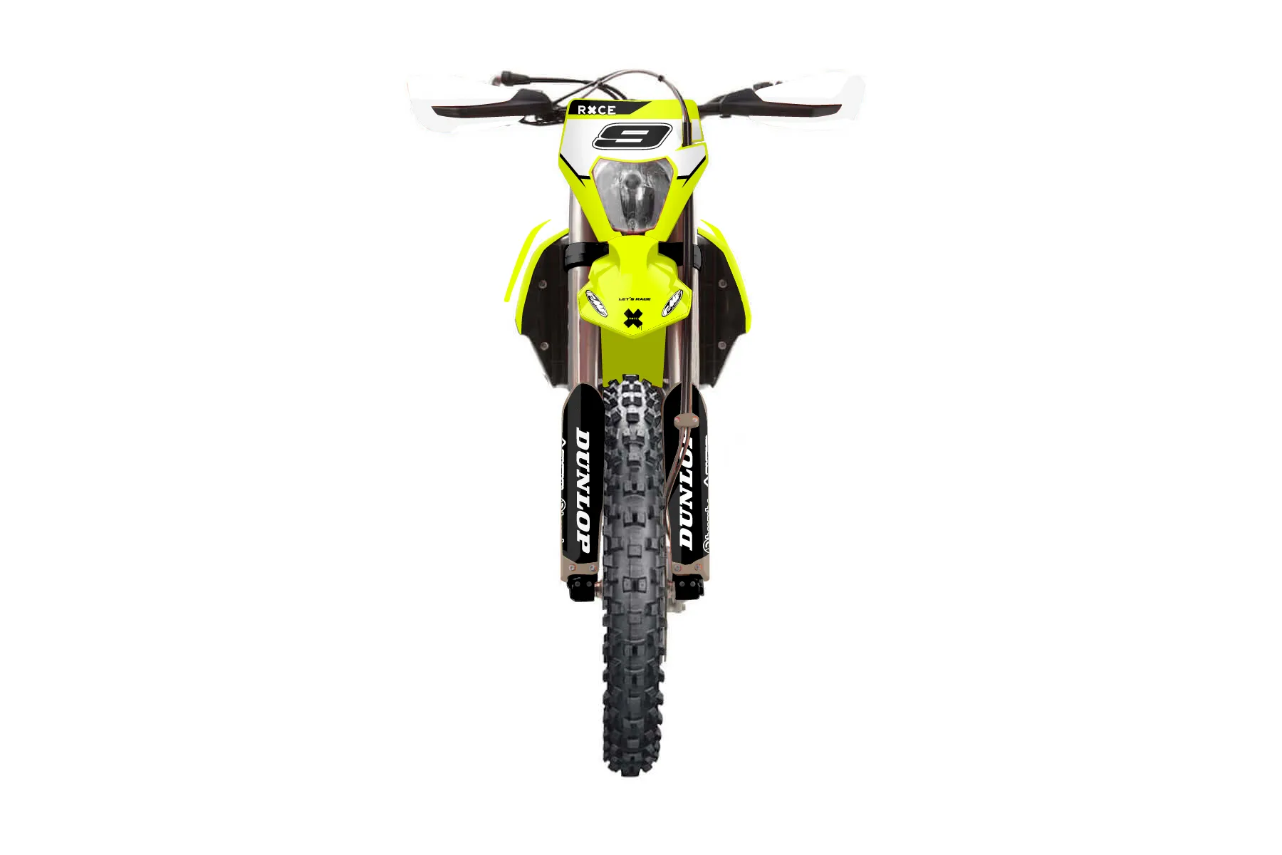 «Bright Neon» — готовый комплект графики серии Maverick для KTM Enduro Graphic Kit KTM XCF-W 450 2022. В комплекте: графика на бак и боковые облицовки, крылья (переднее и заднее), передний щиток, номерные таблички, защита вилки. Материал: ПВХ-винил 80 мкр с холодной ламинацией 300 мкр, общая толщина 380 мкр; покрытие глянцевое или матовое на выбор. Устойчив к UV-излучению, воде, бензину и мойке высокого давления. Клей акриловый на сольвентной основе — постоянный, для гибких пластиков. На простых поверхностях монтируется без нагрева; для сложных изгибов рекомендуем фен. Этот пресет можно заказать как есть или взять за основу в конструкторе: поменять цвета, добавить стартовый номер и свой бренд. Производство — 3–5 рабочих дней, доставка по России СДЭКом или Почтой, по СНГ — курьерскими службами.