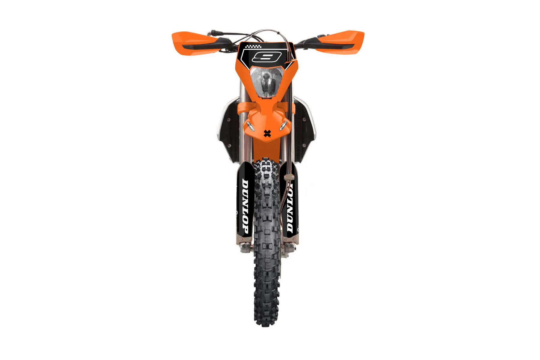 «Craft» — готовый комплект графики серии Staple для KTM Enduro Graphic Kit KTM XCF-W 450 2022. В комплекте: графика на бак и боковые облицовки, крылья (переднее и заднее), передний щиток, номерные таблички, защита вилки. Материал: ПВХ-винил 80 мкр с холодной ламинацией 300 мкр, общая толщина 380 мкр; покрытие глянцевое или матовое на выбор. Устойчив к UV-излучению, воде, бензину и мойке высокого давления. Клей акриловый на сольвентной основе — постоянный, для гибких пластиков. На простых поверхностях монтируется без нагрева; для сложных изгибов рекомендуем фен. Этот пресет можно заказать как есть или взять за основу в конструкторе: поменять цвета, добавить стартовый номер и свой бренд. Производство — 3–5 рабочих дней, доставка по России СДЭКом или Почтой, по СНГ — курьерскими службами.