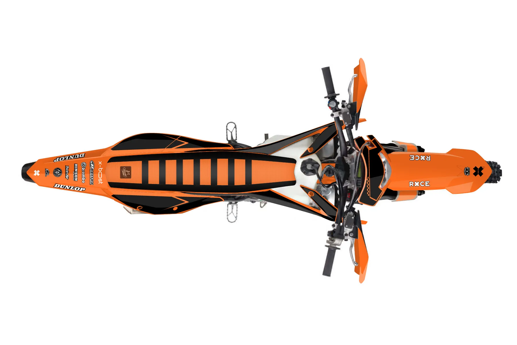 «Direction» — готовый комплект графики серии Staple для KTM Enduro Graphic Kit KTM XCF-W 450 2022. В комплекте: графика на бак и боковые облицовки, крылья (переднее и заднее), передний щиток, номерные таблички, защита вилки. Материал: ПВХ-винил 80 мкр с холодной ламинацией 300 мкр, общая толщина 380 мкр; покрытие глянцевое или матовое на выбор. Устойчив к UV-излучению, воде, бензину и мойке высокого давления. Клей акриловый на сольвентной основе — постоянный, для гибких пластиков. На простых поверхностях монтируется без нагрева; для сложных изгибов рекомендуем фен. Этот пресет можно заказать как есть или взять за основу в конструкторе: поменять цвета, добавить стартовый номер и свой бренд. Производство — 3–5 рабочих дней, доставка по России СДЭКом или Почтой, по СНГ — курьерскими службами.
