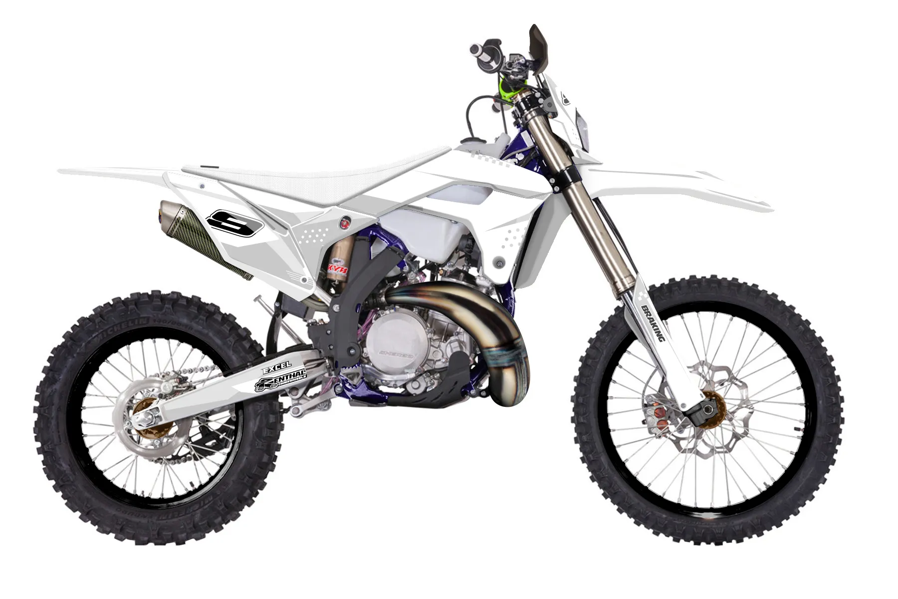 «reeds sherco 2t» — готовый комплект графики серии Staple для Sherco Enduro Graphic Kit Sherco SE 300 2017. В комплекте: графика на бак и боковые облицовки, крылья (переднее и заднее), передний щиток, номерные таблички, защита вилки. Материал: ПВХ-винил 80 мкр с холодной ламинацией 300 мкр, общая толщина 380 мкр; покрытие глянцевое или матовое на выбор. Устойчив к UV-излучению, воде, бензину и мойке высокого давления. Клей акриловый на сольвентной основе — постоянный, для гибких пластиков. На простых поверхностях монтируется без нагрева; для сложных изгибов рекомендуем фен. Этот пресет можно заказать как есть или взять за основу в конструкторе: поменять цвета, добавить стартовый номер и свой бренд. Производство — 3–5 рабочих дней, доставка по России СДЭКом или Почтой, по СНГ — курьерскими службами.