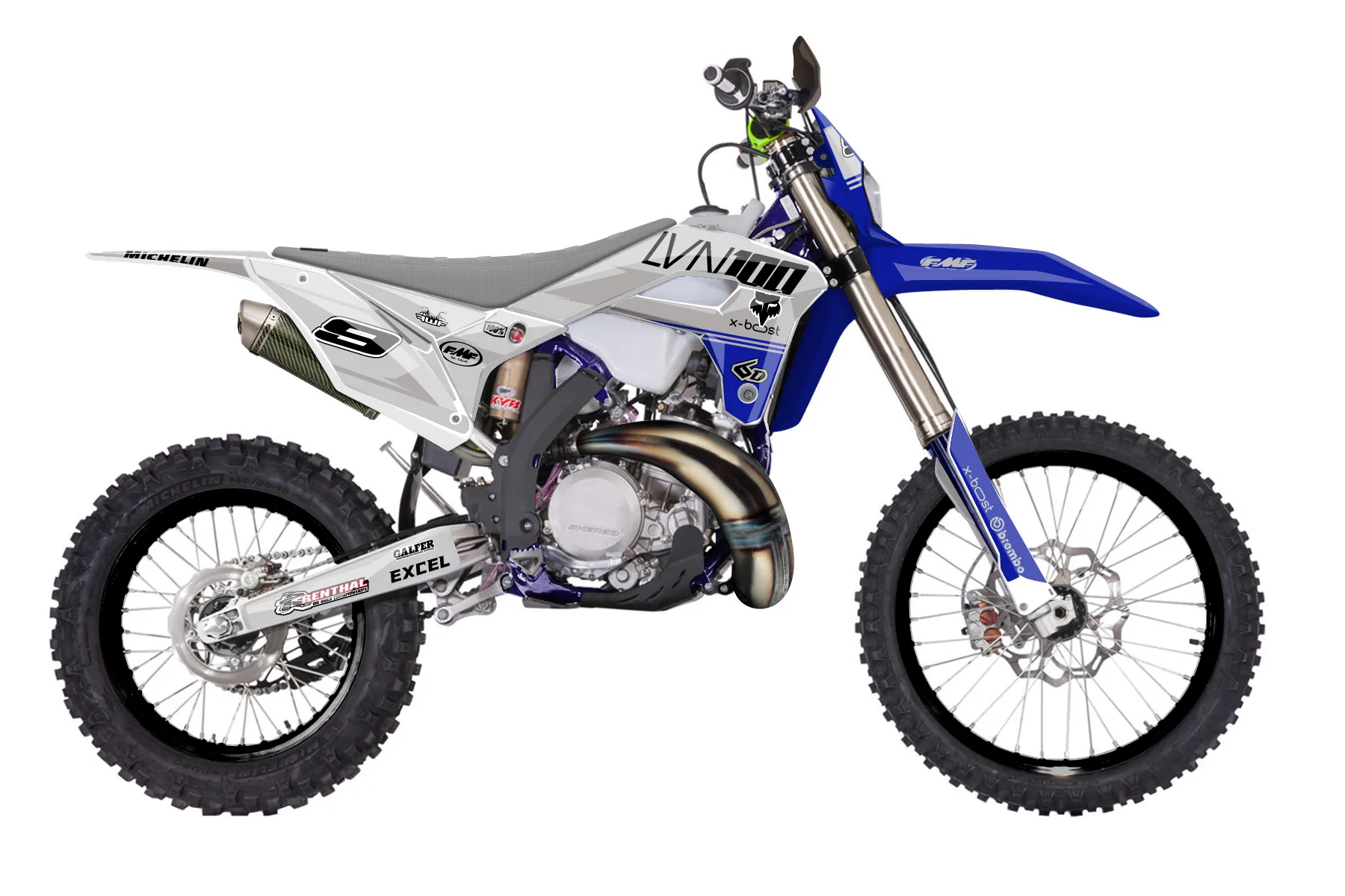 «237» — готовый комплект графики серии Untucked для Sherco Enduro Graphic Kit Sherco SE 300 2017. В комплекте: графика на бак и боковые облицовки, крылья (переднее и заднее), передний щиток, номерные таблички, защита вилки. Материал: ПВХ-винил 80 мкр с холодной ламинацией 300 мкр, общая толщина 380 мкр; покрытие глянцевое или матовое на выбор. Устойчив к UV-излучению, воде, бензину и мойке высокого давления. Клей акриловый на сольвентной основе — постоянный, для гибких пластиков. На простых поверхностях монтируется без нагрева; для сложных изгибов рекомендуем фен. Этот пресет можно заказать как есть или взять за основу в конструкторе: поменять цвета, добавить стартовый номер и свой бренд. Производство — 3–5 рабочих дней, доставка по России СДЭКом или Почтой, по СНГ — курьерскими службами.