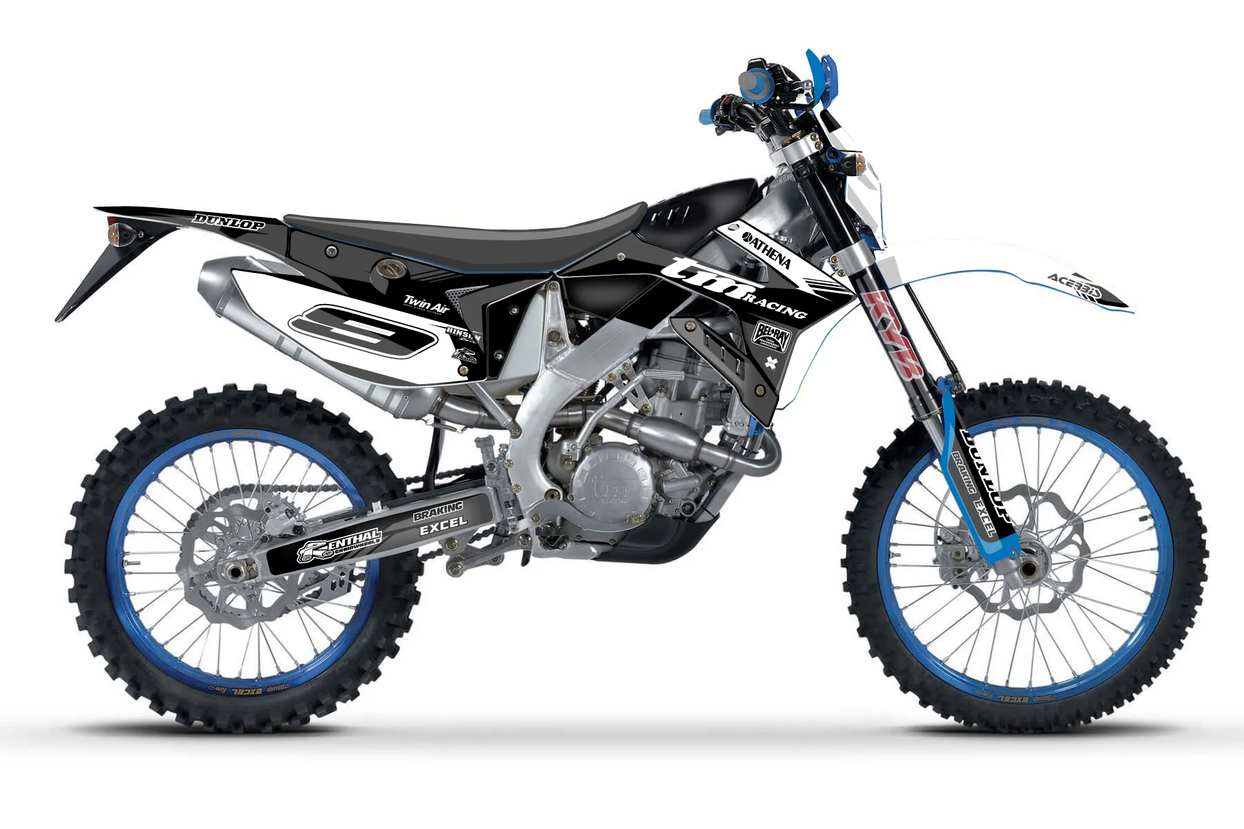 «Factory Zero» — готовый комплект графики серии Factory для TM Racing Enduro Graphic Kit TM Racing – EN ES 4T 2015. В комплекте: графика на бак и боковые облицовки, крылья (переднее и заднее), передний щиток, номерные таблички, защита вилки. Материал: ПВХ-винил 80 мкр с холодной ламинацией 300 мкр, общая толщина 380 мкр; покрытие глянцевое или матовое на выбор. Устойчив к UV-излучению, воде, бензину и мойке высокого давления. Клей акриловый на сольвентной основе — постоянный, для гибких пластиков. На простых поверхностях монтируется без нагрева; для сложных изгибов рекомендуем фен. Этот пресет можно заказать как есть или взять за основу в конструкторе: поменять цвета, добавить стартовый номер и свой бренд. Производство — 3–5 рабочих дней, доставка по России СДЭКом или Почтой, по СНГ — курьерскими службами.