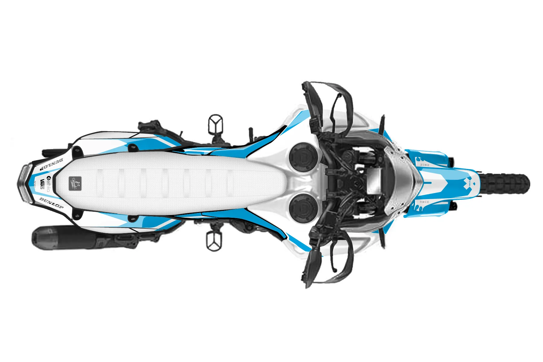«Spotlight» — готовый комплект графики серии Flow для Yamaha Enduro Graphic Kit Yamaha Tenere 700 World Raid 2019. В комплекте: графика на бак и боковые облицовки, крылья (переднее и заднее), передний щиток, номерные таблички, защита вилки. Материал: ПВХ-винил 80 мкр с холодной ламинацией 300 мкр, общая толщина 380 мкр; покрытие глянцевое или матовое на выбор. Устойчив к UV-излучению, воде, бензину и мойке высокого давления. Клей акриловый на сольвентной основе — постоянный, для гибких пластиков. На простых поверхностях монтируется без нагрева; для сложных изгибов рекомендуем фен. Этот пресет можно заказать как есть или взять за основу в конструкторе: поменять цвета, добавить стартовый номер и свой бренд. Производство — 3–5 рабочих дней, доставка по России СДЭКом или Почтой, по СНГ — курьерскими службами.