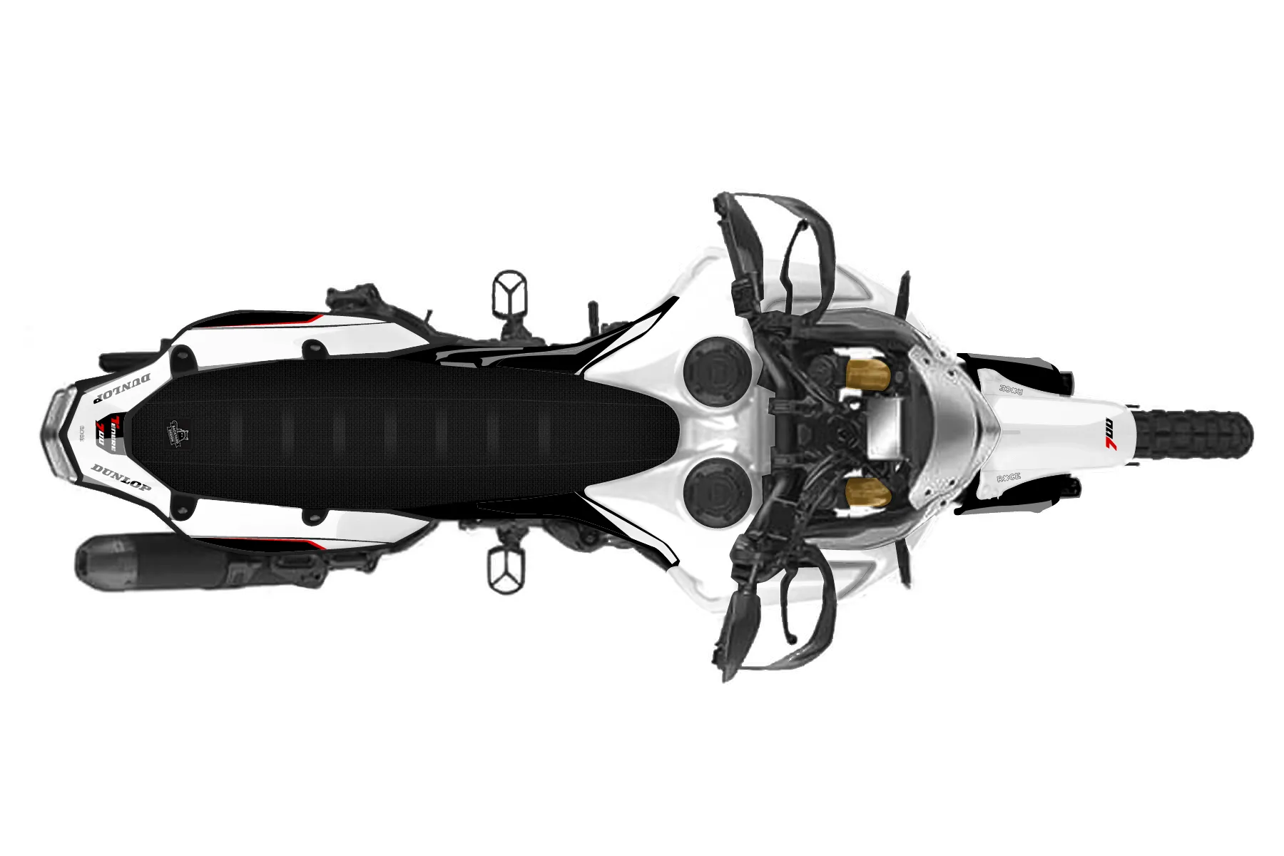 «Moto» — готовый комплект графики серии Staple для Yamaha Enduro Graphic Kit Yamaha Tenere 700 World Raid 2019. В комплекте: графика на бак и боковые облицовки, крылья (переднее и заднее), передний щиток, номерные таблички, защита вилки. Материал: ПВХ-винил 80 мкр с холодной ламинацией 300 мкр, общая толщина 380 мкр; покрытие глянцевое или матовое на выбор. Устойчив к UV-излучению, воде, бензину и мойке высокого давления. Клей акриловый на сольвентной основе — постоянный, для гибких пластиков. На простых поверхностях монтируется без нагрева; для сложных изгибов рекомендуем фен. Этот пресет можно заказать как есть или взять за основу в конструкторе: поменять цвета, добавить стартовый номер и свой бренд. Производство — 3–5 рабочих дней, доставка по России СДЭКом или Почтой, по СНГ — курьерскими службами.