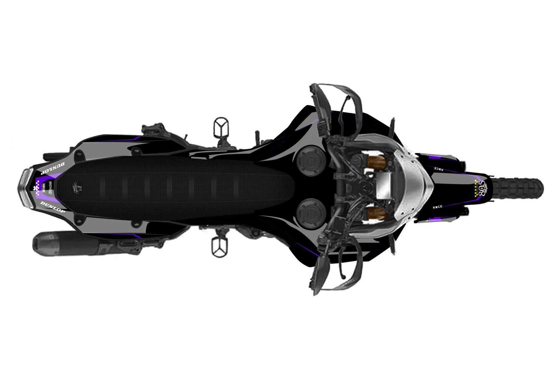 «Zebra» — готовый комплект графики серии Staple для Yamaha Enduro Graphic Kit Yamaha Tenere 700 World Raid 2019. В комплекте: графика на бак и боковые облицовки, крылья (переднее и заднее), передний щиток, номерные таблички, защита вилки. Материал: ПВХ-винил 80 мкр с холодной ламинацией 300 мкр, общая толщина 380 мкр; покрытие глянцевое или матовое на выбор. Устойчив к UV-излучению, воде, бензину и мойке высокого давления. Клей акриловый на сольвентной основе — постоянный, для гибких пластиков. На простых поверхностях монтируется без нагрева; для сложных изгибов рекомендуем фен. Этот пресет можно заказать как есть или взять за основу в конструкторе: поменять цвета, добавить стартовый номер и свой бренд. Производство — 3–5 рабочих дней, доставка по России СДЭКом или Почтой, по СНГ — курьерскими службами.