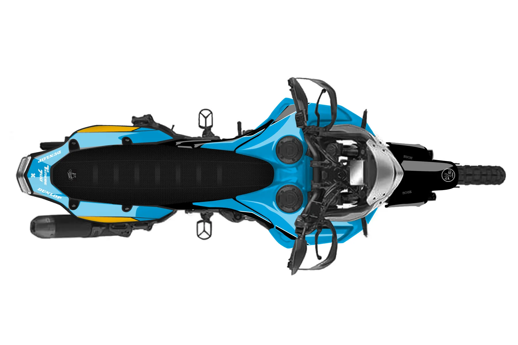 «Ice» — готовый комплект графики серии Untucked для Yamaha Enduro Graphic Kit Yamaha Tenere 700 World Raid 2019. В комплекте: графика на бак и боковые облицовки, крылья (переднее и заднее), передний щиток, номерные таблички, защита вилки. Материал: ПВХ-винил 80 мкр с холодной ламинацией 300 мкр, общая толщина 380 мкр; покрытие глянцевое или матовое на выбор. Устойчив к UV-излучению, воде, бензину и мойке высокого давления. Клей акриловый на сольвентной основе — постоянный, для гибких пластиков. На простых поверхностях монтируется без нагрева; для сложных изгибов рекомендуем фен. Этот пресет можно заказать как есть или взять за основу в конструкторе: поменять цвета, добавить стартовый номер и свой бренд. Производство — 3–5 рабочих дней, доставка по России СДЭКом или Почтой, по СНГ — курьерскими службами.