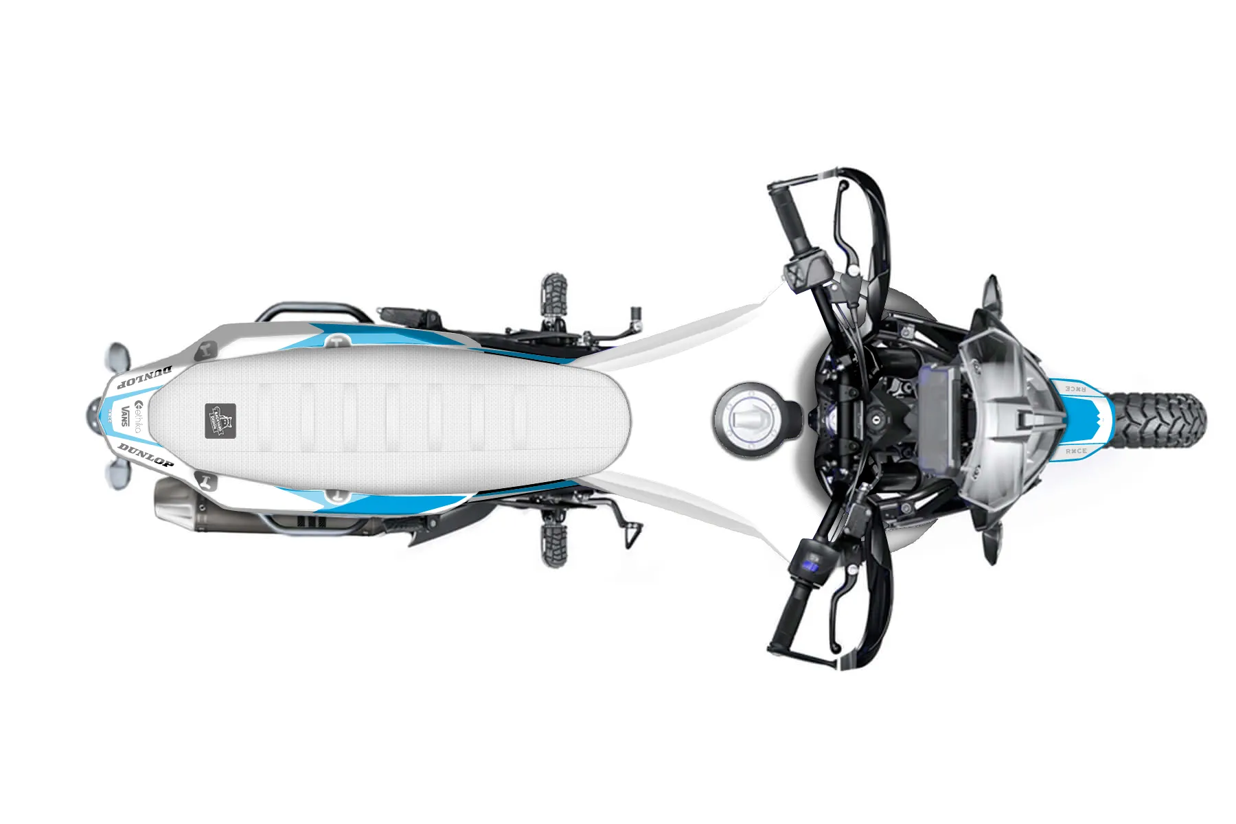 «Spotlight» — готовый комплект графики серии Flow для Yamaha Enduro Graphic Kit Yamaha Ténéré 700 2019. В комплекте: графика на бак и боковые облицовки, крылья (переднее и заднее), передний щиток, номерные таблички, защита вилки. Материал: ПВХ-винил 80 мкр с холодной ламинацией 300 мкр, общая толщина 380 мкр; покрытие глянцевое или матовое на выбор. Устойчив к UV-излучению, воде, бензину и мойке высокого давления. Клей акриловый на сольвентной основе — постоянный, для гибких пластиков. На простых поверхностях монтируется без нагрева; для сложных изгибов рекомендуем фен. Этот пресет можно заказать как есть или взять за основу в конструкторе: поменять цвета, добавить стартовый номер и свой бренд. Производство — 3–5 рабочих дней, доставка по России СДЭКом или Почтой, по СНГ — курьерскими службами.