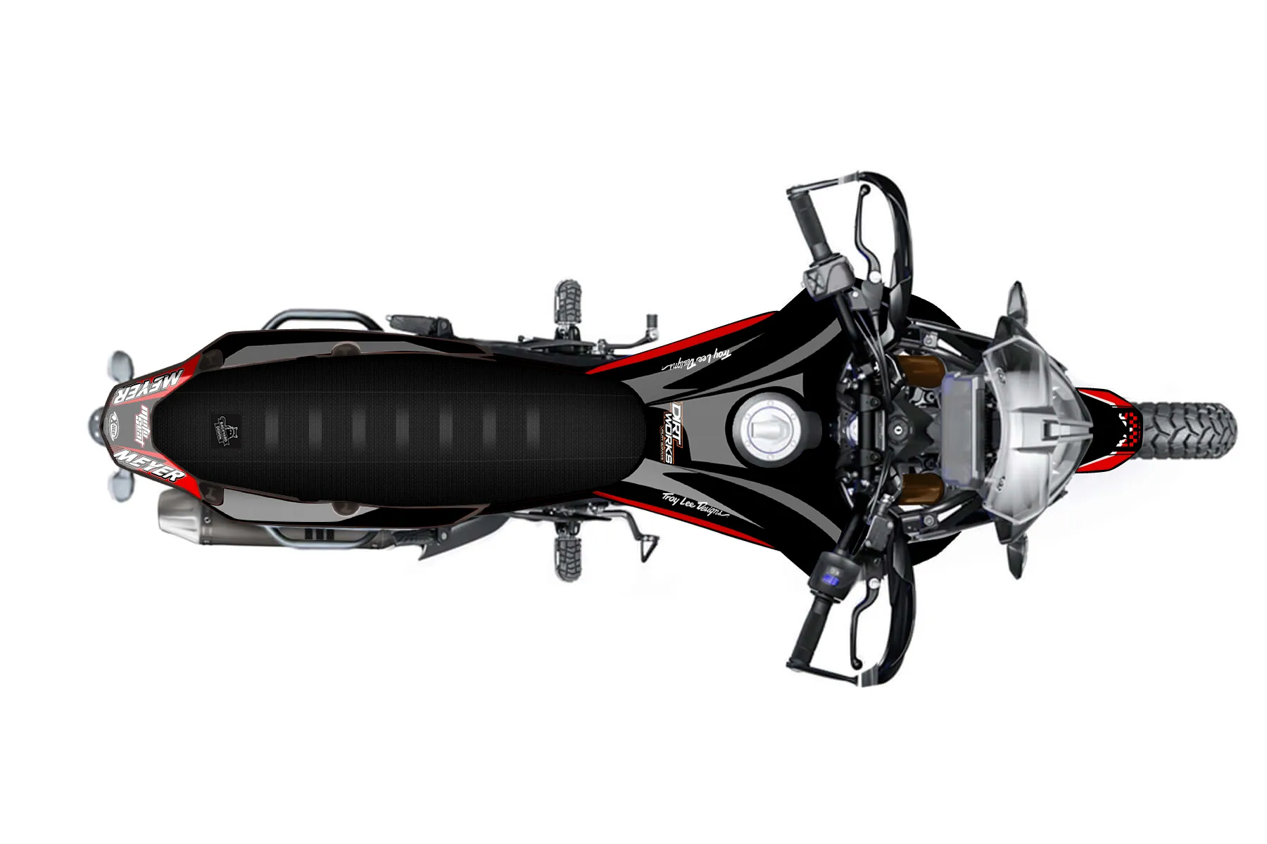 «black&red Design» — готовый комплект графики серии Staple для Yamaha Enduro Graphic Kit Yamaha Ténéré 700 2020. В комплекте: графика на бак и боковые облицовки, крылья (переднее и заднее), передний щиток, номерные таблички, защита вилки. Материал: ПВХ-винил 80 мкр с холодной ламинацией 300 мкр, общая толщина 380 мкр; покрытие глянцевое или матовое на выбор. Устойчив к UV-излучению, воде, бензину и мойке высокого давления. Клей акриловый на сольвентной основе — постоянный, для гибких пластиков. На простых поверхностях монтируется без нагрева; для сложных изгибов рекомендуем фен. Этот пресет можно заказать как есть или взять за основу в конструкторе: поменять цвета, добавить стартовый номер и свой бренд. Производство — 3–5 рабочих дней, доставка по России СДЭКом или Почтой, по СНГ — курьерскими службами.