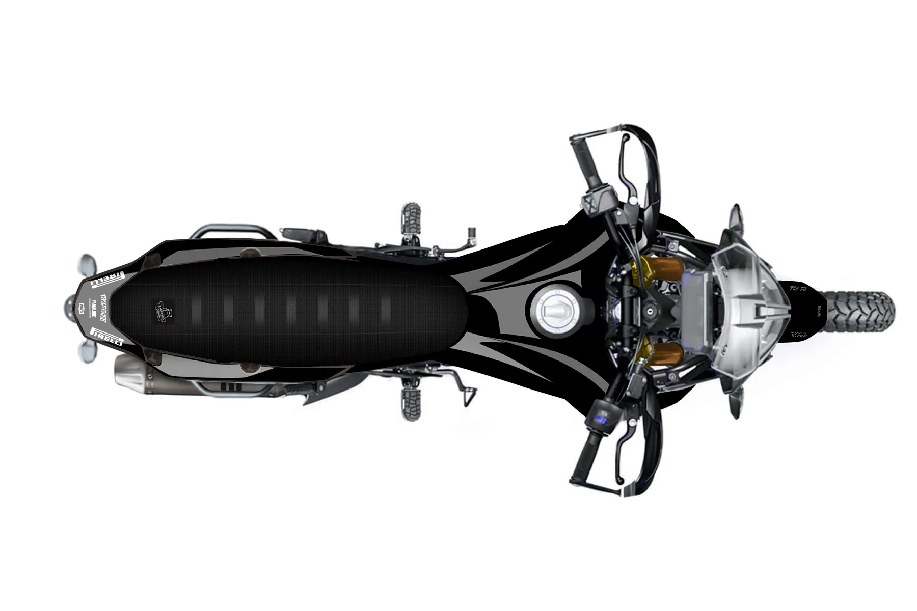 «CustomDesign77» — готовый комплект графики серии Staple для Yamaha Enduro Graphic Kit Yamaha Ténéré 700 2020. В комплекте: графика на бак и боковые облицовки, крылья (переднее и заднее), передний щиток, номерные таблички, защита вилки. Материал: ПВХ-винил 80 мкр с холодной ламинацией 300 мкр, общая толщина 380 мкр; покрытие глянцевое или матовое на выбор. Устойчив к UV-излучению, воде, бензину и мойке высокого давления. Клей акриловый на сольвентной основе — постоянный, для гибких пластиков. На простых поверхностях монтируется без нагрева; для сложных изгибов рекомендуем фен. Этот пресет можно заказать как есть или взять за основу в конструкторе: поменять цвета, добавить стартовый номер и свой бренд. Производство — 3–5 рабочих дней, доставка по России СДЭКом или Почтой, по СНГ — курьерскими службами.