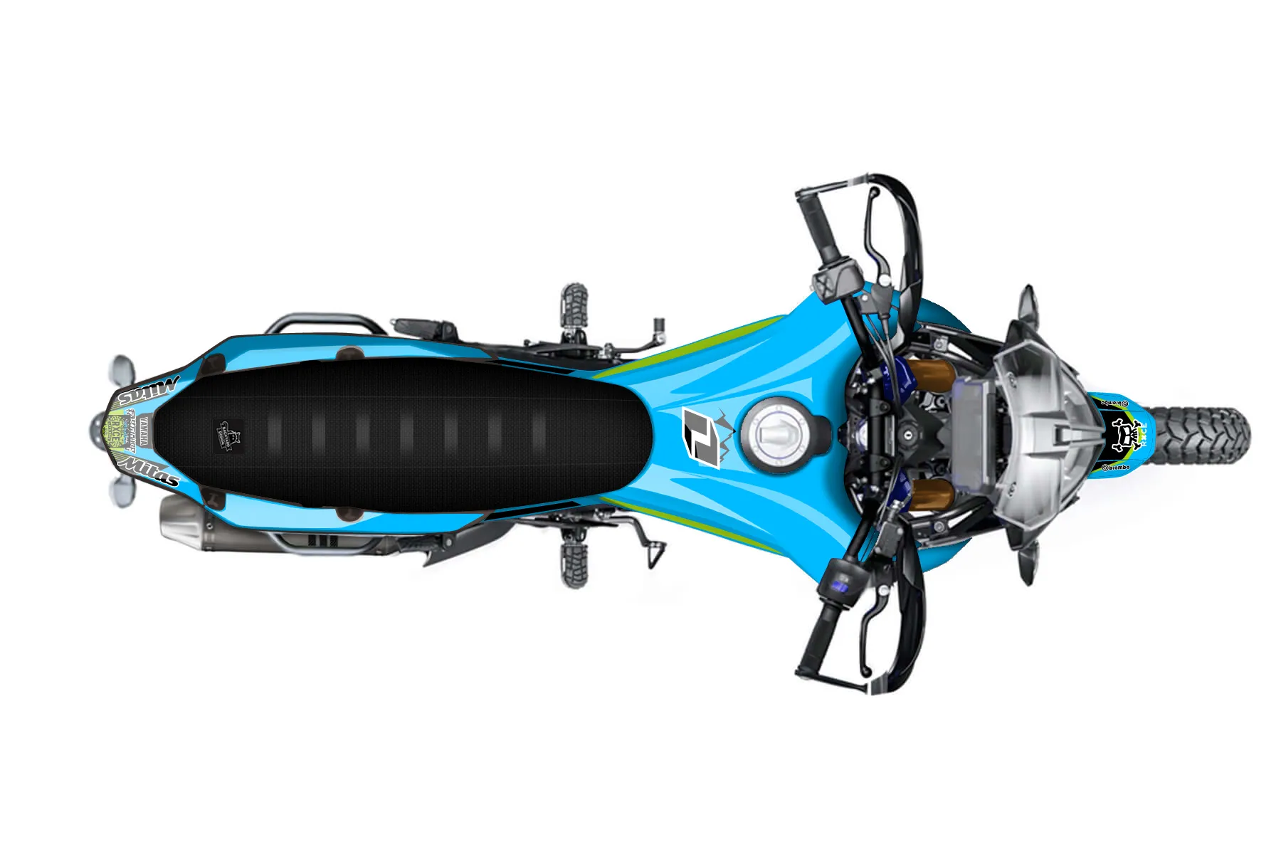 «FH sky blue 1» — готовый комплект графики серии Staple для Yamaha Enduro Graphic Kit Yamaha Ténéré 700 2020. В комплекте: графика на бак и боковые облицовки, крылья (переднее и заднее), передний щиток, номерные таблички, защита вилки. Материал: ПВХ-винил 80 мкр с холодной ламинацией 300 мкр, общая толщина 380 мкр; покрытие глянцевое или матовое на выбор. Устойчив к UV-излучению, воде, бензину и мойке высокого давления. Клей акриловый на сольвентной основе — постоянный, для гибких пластиков. На простых поверхностях монтируется без нагрева; для сложных изгибов рекомендуем фен. Этот пресет можно заказать как есть или взять за основу в конструкторе: поменять цвета, добавить стартовый номер и свой бренд. Производство — 3–5 рабочих дней, доставка по России СДЭКом или Почтой, по СНГ — курьерскими службами.
