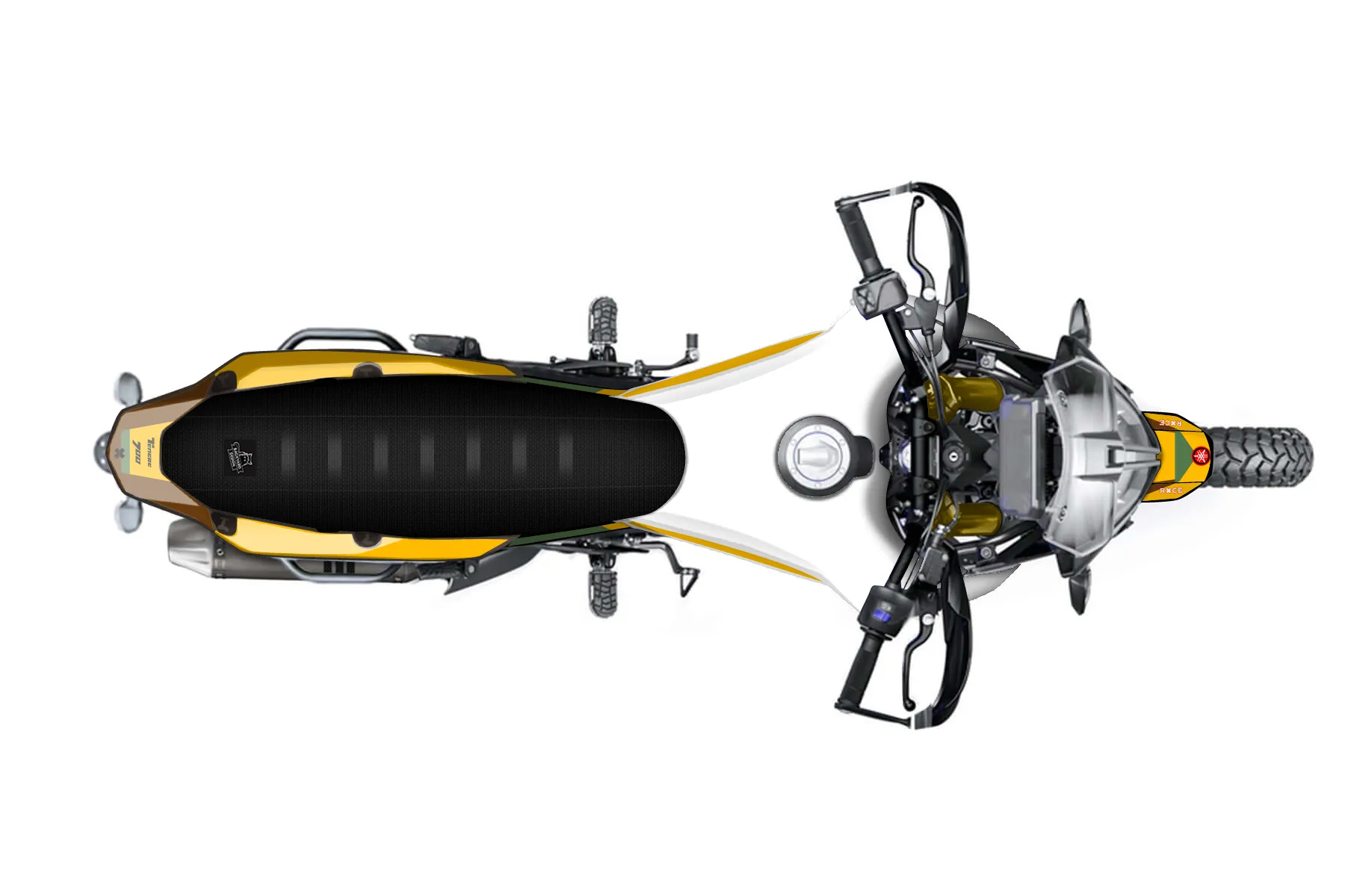 «GBGold» — готовый комплект графики серии Staple для Yamaha Enduro Graphic Kit Yamaha Ténéré 700 2020. В комплекте: графика на бак и боковые облицовки, крылья (переднее и заднее), передний щиток, номерные таблички, защита вилки. Материал: ПВХ-винил 80 мкр с холодной ламинацией 300 мкр, общая толщина 380 мкр; покрытие глянцевое или матовое на выбор. Устойчив к UV-излучению, воде, бензину и мойке высокого давления. Клей акриловый на сольвентной основе — постоянный, для гибких пластиков. На простых поверхностях монтируется без нагрева; для сложных изгибов рекомендуем фен. Этот пресет можно заказать как есть или взять за основу в конструкторе: поменять цвета, добавить стартовый номер и свой бренд. Производство — 3–5 рабочих дней, доставка по России СДЭКом или Почтой, по СНГ — курьерскими службами.