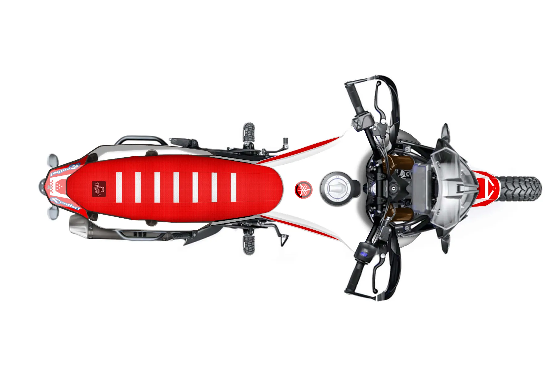«T7 red and white update» — готовый комплект графики серии Staple для Yamaha Enduro Graphic Kit Yamaha Ténéré 700 2020. В комплекте: графика на бак и боковые облицовки, крылья (переднее и заднее), передний щиток, номерные таблички, защита вилки. Материал: ПВХ-винил 80 мкр с холодной ламинацией 300 мкр, общая толщина 380 мкр; покрытие глянцевое или матовое на выбор. Устойчив к UV-излучению, воде, бензину и мойке высокого давления. Клей акриловый на сольвентной основе — постоянный, для гибких пластиков. На простых поверхностях монтируется без нагрева; для сложных изгибов рекомендуем фен. Этот пресет можно заказать как есть или взять за основу в конструкторе: поменять цвета, добавить стартовый номер и свой бренд. Производство — 3–5 рабочих дней, доставка по России СДЭКом или Почтой, по СНГ — курьерскими службами.