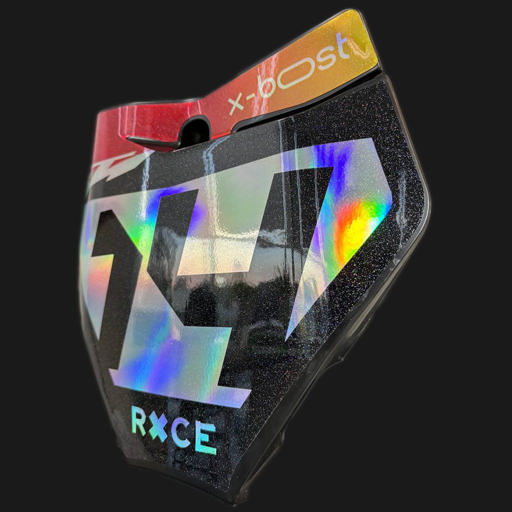 персонализация: номер, имя, логотипы, цвета под ваш байк и экип