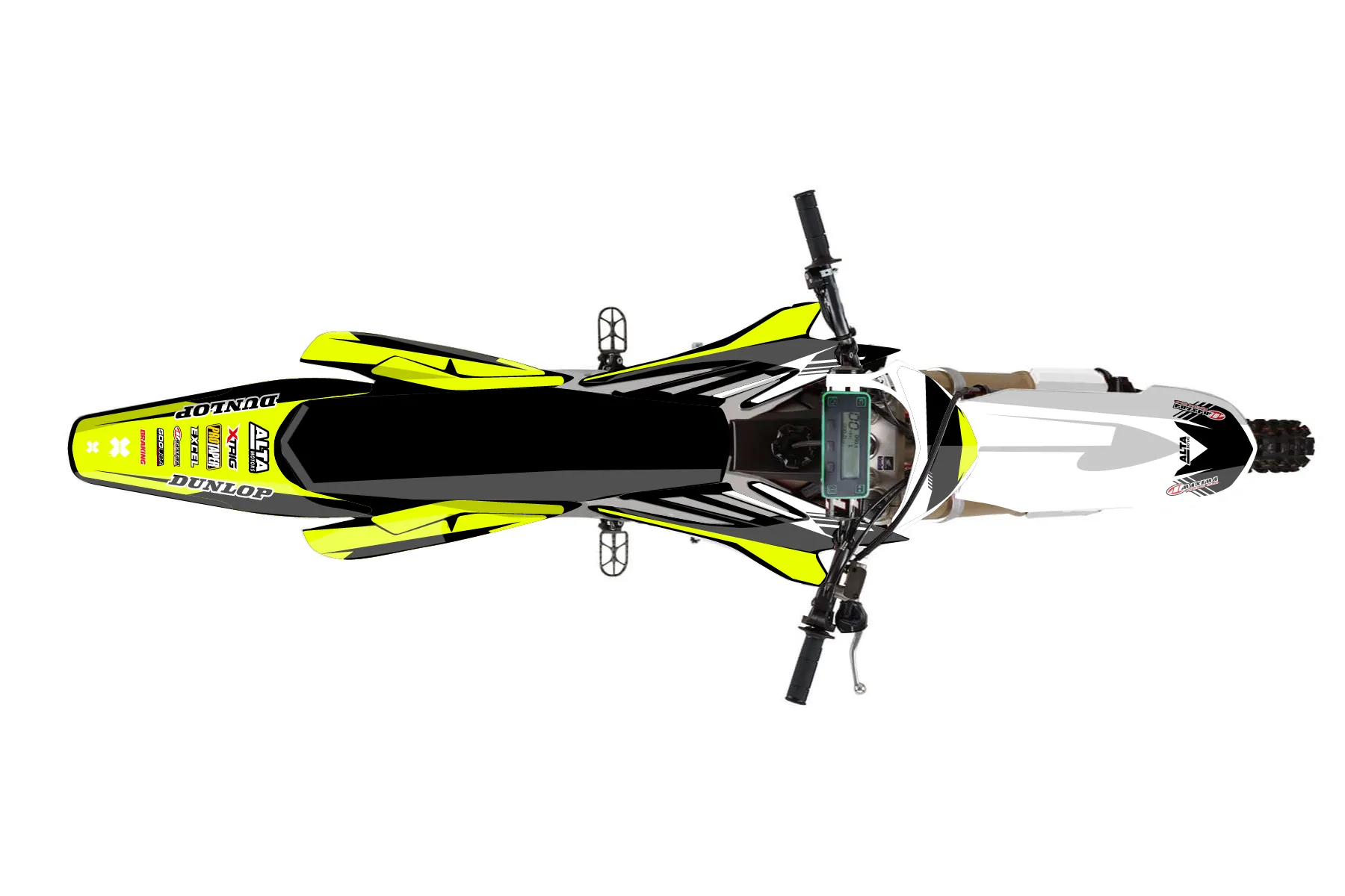 «Factory Neon» — готовый комплект графики серии Factory для Alta MX Graphic Kit ALTA Redshift 2015. В комплекте: графика на бак и боковые облицовки, крылья (переднее и заднее), передний щиток, номерные таблички, защита вилки. Материал: ПВХ-винил 80 мкр с холодной ламинацией 300 мкр, общая толщина 380 мкр; покрытие глянцевое или матовое на выбор. Устойчив к UV-излучению, воде, бензину и мойке высокого давления. Клей акриловый на сольвентной основе — постоянный, для гибких пластиков. На простых поверхностях монтируется без нагрева; для сложных изгибов рекомендуем фен. Этот пресет можно заказать как есть или взять за основу в конструкторе: поменять цвета, добавить стартовый номер и свой бренд. Производство — 3–5 рабочих дней, доставка по России СДЭКом или Почтой, по СНГ — курьерскими службами.