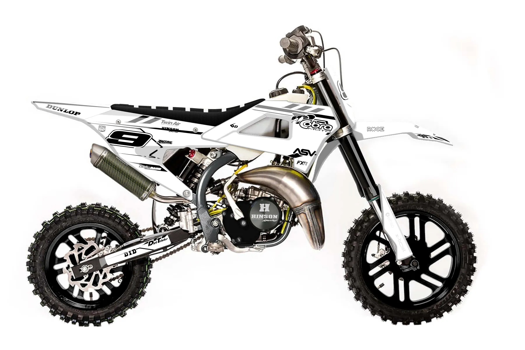 «Black and White» — готовый комплект графики серии Maverick для Cobra MX Graphics Cobra CX 50 FWE 2021. В комплекте: графика на бак и боковые облицовки, крылья (переднее и заднее), передний щиток, номерные таблички, защита вилки. Материал: ПВХ-винил 80 мкр с холодной ламинацией 300 мкр, общая толщина 380 мкр; покрытие глянцевое или матовое на выбор. Устойчив к UV-излучению, воде, бензину и мойке высокого давления. Клей акриловый на сольвентной основе — постоянный, для гибких пластиков. На простых поверхностях монтируется без нагрева; для сложных изгибов рекомендуем фен. Этот пресет можно заказать как есть или взять за основу в конструкторе: поменять цвета, добавить стартовый номер и свой бренд. Производство — 3–5 рабочих дней, доставка по России СДЭКом или Почтой, по СНГ — курьерскими службами.