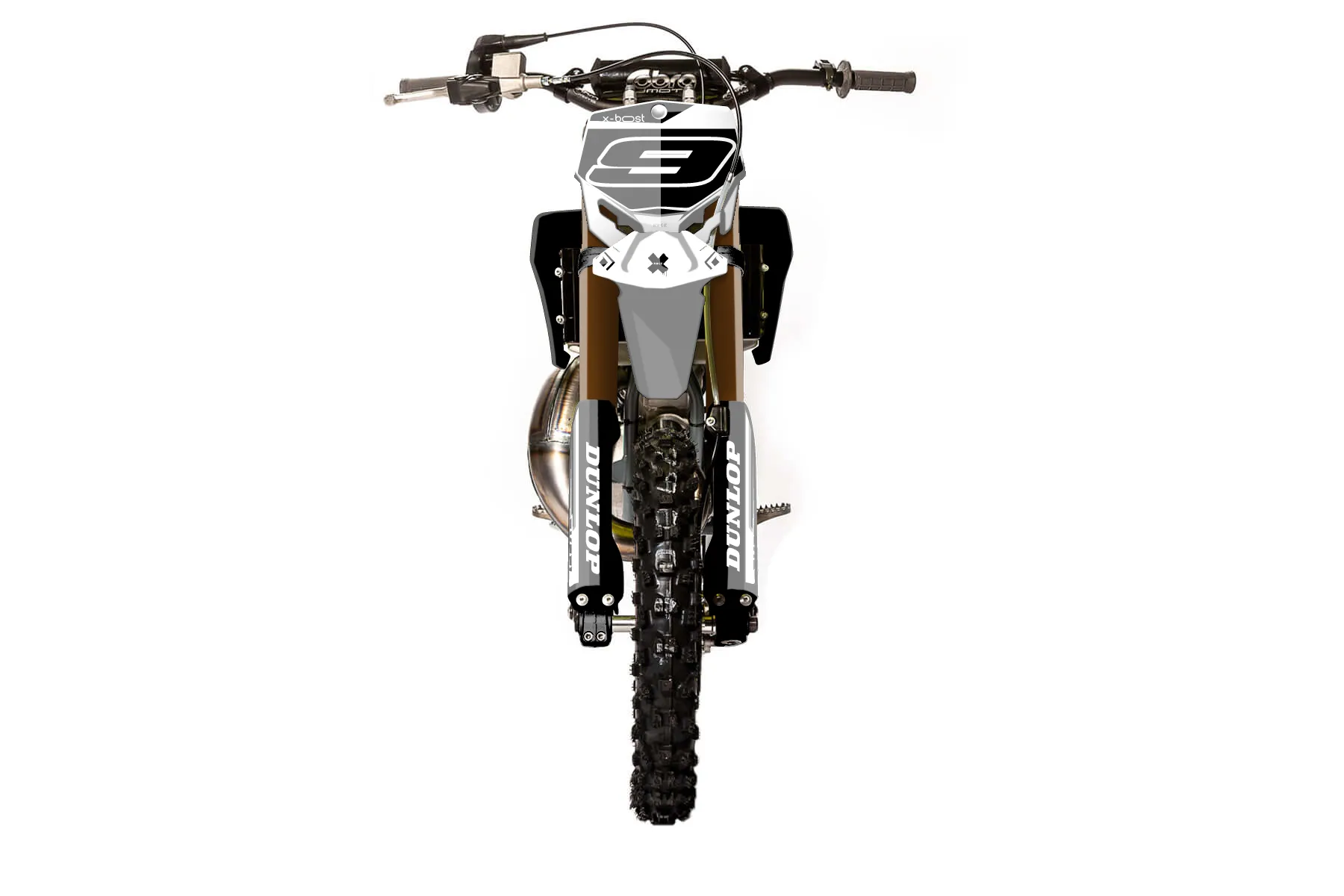 «Canon» — готовый комплект графики серии Maverick для Cobra MX Graphics Cobra CX 50 FWE 2021. В комплекте: графика на бак и боковые облицовки, крылья (переднее и заднее), передний щиток, номерные таблички, защита вилки. Материал: ПВХ-винил 80 мкр с холодной ламинацией 300 мкр, общая толщина 380 мкр; покрытие глянцевое или матовое на выбор. Устойчив к UV-излучению, воде, бензину и мойке высокого давления. Клей акриловый на сольвентной основе — постоянный, для гибких пластиков. На простых поверхностях монтируется без нагрева; для сложных изгибов рекомендуем фен. Этот пресет можно заказать как есть или взять за основу в конструкторе: поменять цвета, добавить стартовый номер и свой бренд. Производство — 3–5 рабочих дней, доставка по России СДЭКом или Почтой, по СНГ — курьерскими службами.