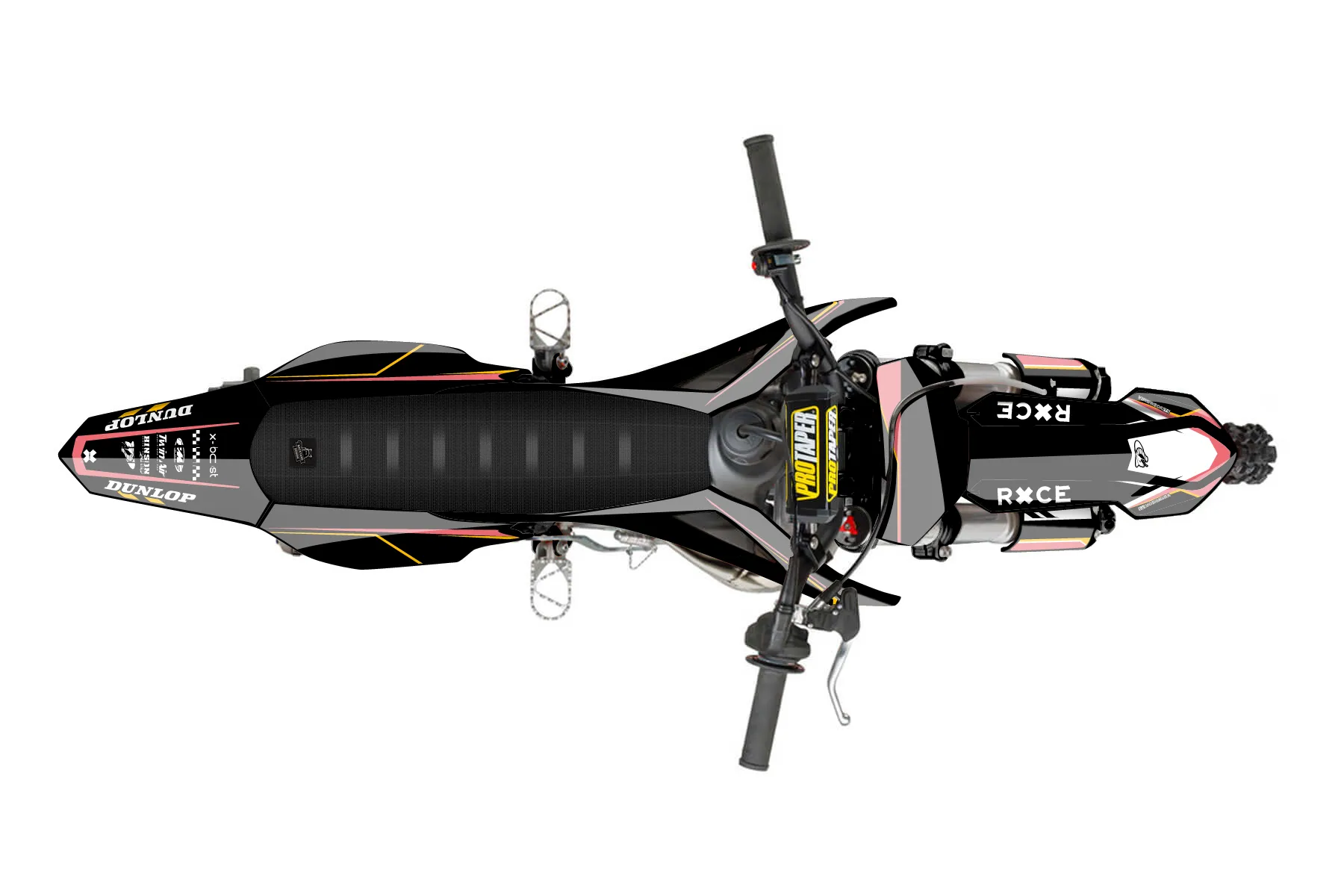 «Charge» — готовый комплект графики серии Maverick для Cobra MX Graphics Cobra CX 50 FWE 2021. В комплекте: графика на бак и боковые облицовки, крылья (переднее и заднее), передний щиток, номерные таблички, защита вилки. Материал: ПВХ-винил 80 мкр с холодной ламинацией 300 мкр, общая толщина 380 мкр; покрытие глянцевое или матовое на выбор. Устойчив к UV-излучению, воде, бензину и мойке высокого давления. Клей акриловый на сольвентной основе — постоянный, для гибких пластиков. На простых поверхностях монтируется без нагрева; для сложных изгибов рекомендуем фен. Этот пресет можно заказать как есть или взять за основу в конструкторе: поменять цвета, добавить стартовый номер и свой бренд. Производство — 3–5 рабочих дней, доставка по России СДЭКом или Почтой, по СНГ — курьерскими службами.