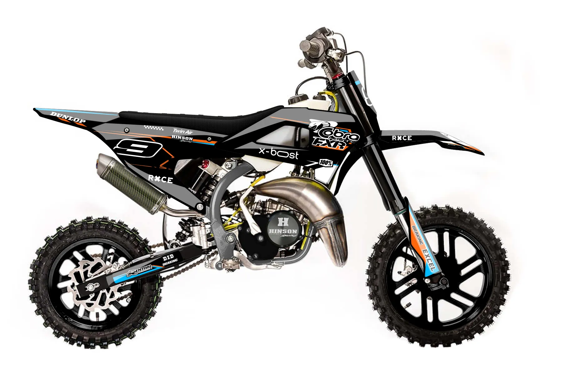 «Cobra FWE» — готовый комплект графики серии Maverick для Cobra MX Graphics Cobra CX 50 FWE 2021. В комплекте: графика на бак и боковые облицовки, крылья (переднее и заднее), передний щиток, номерные таблички, защита вилки. Материал: ПВХ-винил 80 мкр с холодной ламинацией 300 мкр, общая толщина 380 мкр; покрытие глянцевое или матовое на выбор. Устойчив к UV-излучению, воде, бензину и мойке высокого давления. Клей акриловый на сольвентной основе — постоянный, для гибких пластиков. На простых поверхностях монтируется без нагрева; для сложных изгибов рекомендуем фен. Этот пресет можно заказать как есть или взять за основу в конструкторе: поменять цвета, добавить стартовый номер и свой бренд. Производство — 3–5 рабочих дней, доставка по России СДЭКом или Почтой, по СНГ — курьерскими службами.