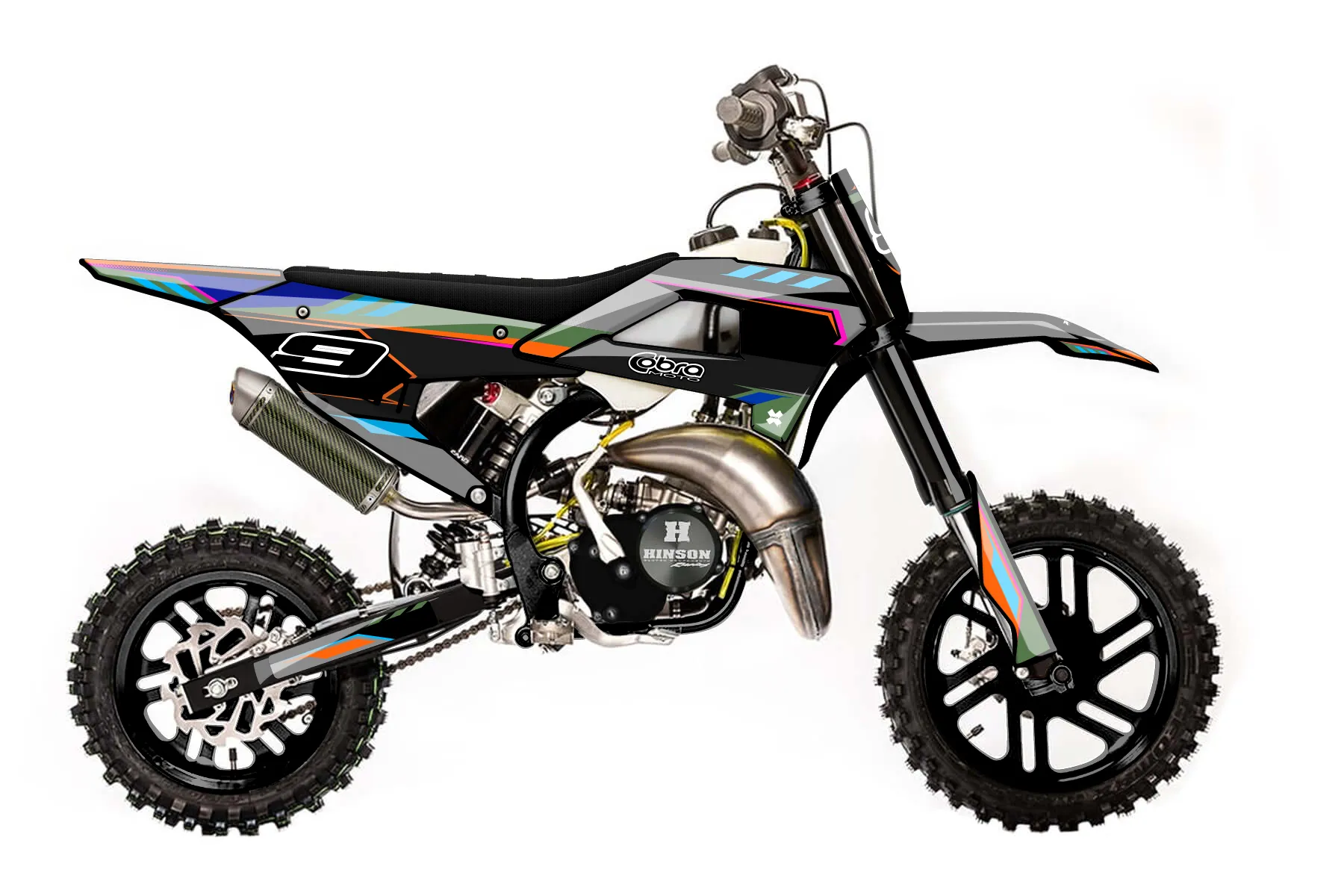 «cobra muti» — готовый комплект графики серии Maverick для Cobra MX Graphics Cobra CX 50 FWE 2021. В комплекте: графика на бак и боковые облицовки, крылья (переднее и заднее), передний щиток, номерные таблички, защита вилки. Материал: ПВХ-винил 80 мкр с холодной ламинацией 300 мкр, общая толщина 380 мкр; покрытие глянцевое или матовое на выбор. Устойчив к UV-излучению, воде, бензину и мойке высокого давления. Клей акриловый на сольвентной основе — постоянный, для гибких пластиков. На простых поверхностях монтируется без нагрева; для сложных изгибов рекомендуем фен. Этот пресет можно заказать как есть или взять за основу в конструкторе: поменять цвета, добавить стартовый номер и свой бренд. Производство — 3–5 рабочих дней, доставка по России СДЭКом или Почтой, по СНГ — курьерскими службами.