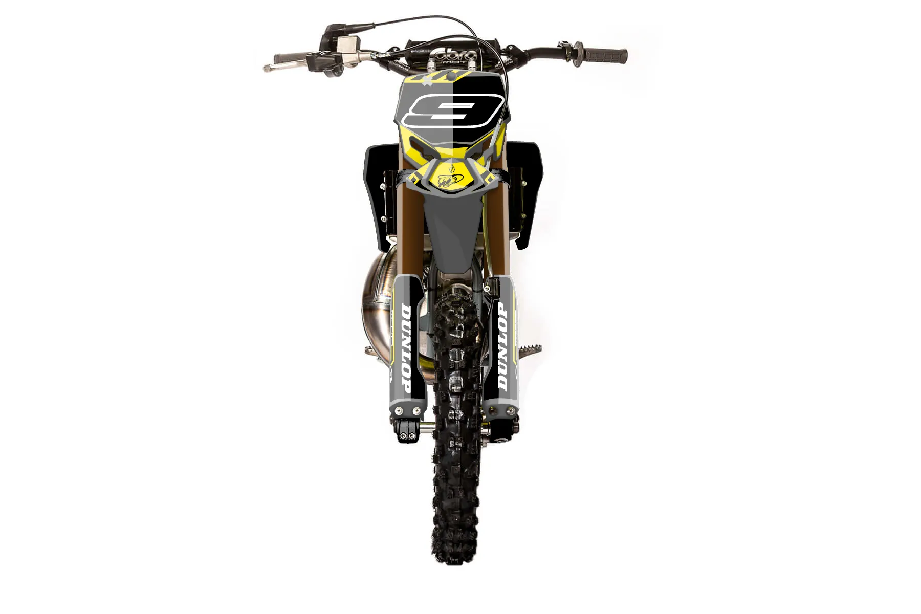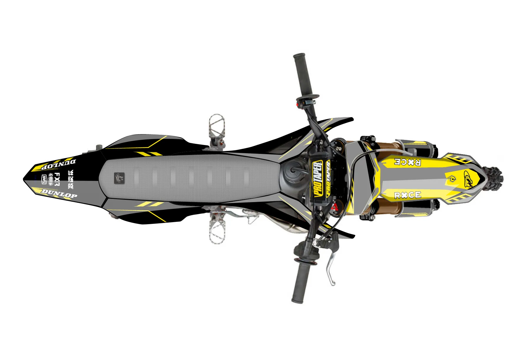 «CustomDesign» — готовый комплект графики серии Maverick для Cobra MX Graphics Cobra CX 50 FWE 2021. В комплекте: графика на бак и боковые облицовки, крылья (переднее и заднее), передний щиток, номерные таблички, защита вилки. Материал: ПВХ-винил 80 мкр с холодной ламинацией 300 мкр, общая толщина 380 мкр; покрытие глянцевое или матовое на выбор. Устойчив к UV-излучению, воде, бензину и мойке высокого давления. Клей акриловый на сольвентной основе — постоянный, для гибких пластиков. На простых поверхностях монтируется без нагрева; для сложных изгибов рекомендуем фен. Этот пресет можно заказать как есть или взять за основу в конструкторе: поменять цвета, добавить стартовый номер и свой бренд. Производство — 3–5 рабочих дней, доставка по России СДЭКом или Почтой, по СНГ — курьерскими службами.