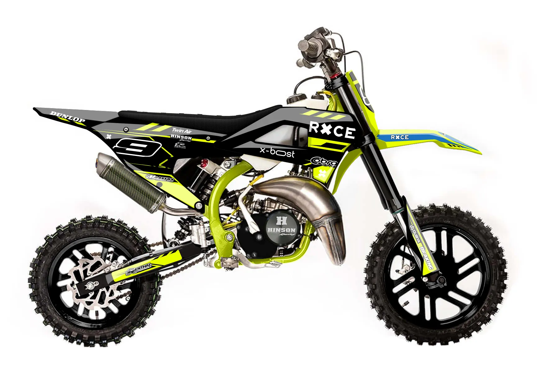«Hudson Cobra» — готовый комплект графики серии Maverick для Cobra MX Graphics Cobra CX 50 FWE 2021. В комплекте: графика на бак и боковые облицовки, крылья (переднее и заднее), передний щиток, номерные таблички, защита вилки. Материал: ПВХ-винил 80 мкр с холодной ламинацией 300 мкр, общая толщина 380 мкр; покрытие глянцевое или матовое на выбор. Устойчив к UV-излучению, воде, бензину и мойке высокого давления. Клей акриловый на сольвентной основе — постоянный, для гибких пластиков. На простых поверхностях монтируется без нагрева; для сложных изгибов рекомендуем фен. Этот пресет можно заказать как есть или взять за основу в конструкторе: поменять цвета, добавить стартовый номер и свой бренд. Производство — 3–5 рабочих дней, доставка по России СДЭКом или Почтой, по СНГ — курьерскими службами.