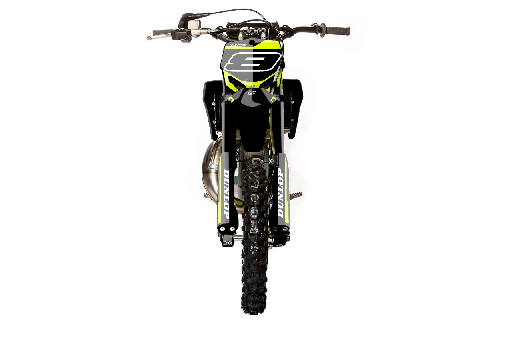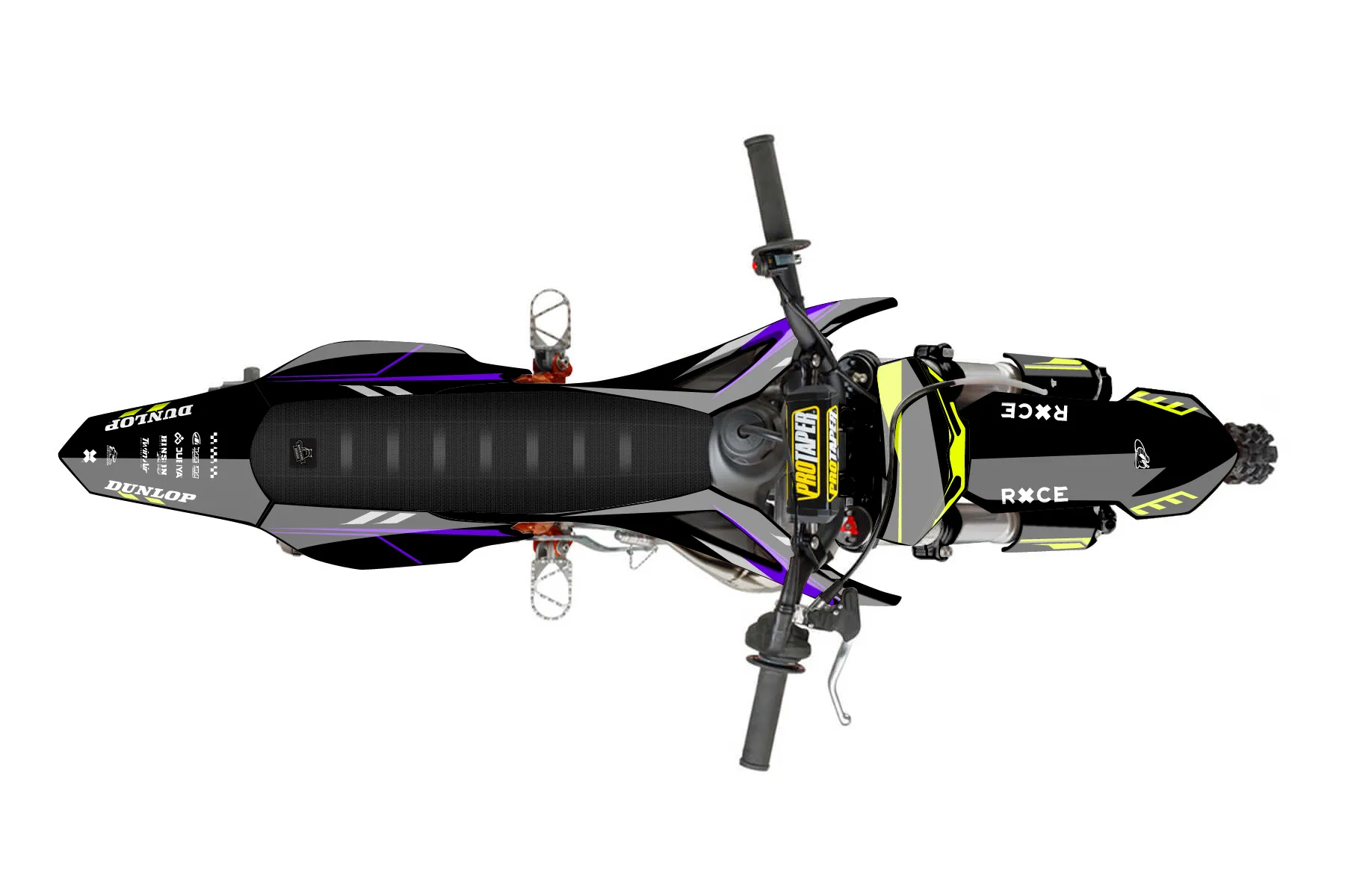 «Kyler FWE» — готовый комплект графики серии Maverick для Cobra MX Graphics Cobra CX 50 FWE 2021. В комплекте: графика на бак и боковые облицовки, крылья (переднее и заднее), передний щиток, номерные таблички, защита вилки. Материал: ПВХ-винил 80 мкр с холодной ламинацией 300 мкр, общая толщина 380 мкр; покрытие глянцевое или матовое на выбор. Устойчив к UV-излучению, воде, бензину и мойке высокого давления. Клей акриловый на сольвентной основе — постоянный, для гибких пластиков. На простых поверхностях монтируется без нагрева; для сложных изгибов рекомендуем фен. Этот пресет можно заказать как есть или взять за основу в конструкторе: поменять цвета, добавить стартовый номер и свой бренд. Производство — 3–5 рабочих дней, доставка по России СДЭКом или Почтой, по СНГ — курьерскими службами.