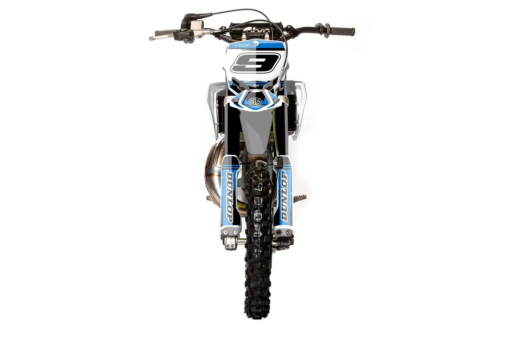 «2025 ebike» — готовый комплект графики серии Untucked для Cobra MX Graphics Cobra CX 50 FWE 2021. В комплекте: графика на бак и боковые облицовки, крылья (переднее и заднее), передний щиток, номерные таблички, защита вилки. Материал: ПВХ-винил 80 мкр с холодной ламинацией 300 мкр, общая толщина 380 мкр; покрытие глянцевое или матовое на выбор. Устойчив к UV-излучению, воде, бензину и мойке высокого давления. Клей акриловый на сольвентной основе — постоянный, для гибких пластиков. На простых поверхностях монтируется без нагрева; для сложных изгибов рекомендуем фен. Этот пресет можно заказать как есть или взять за основу в конструкторе: поменять цвета, добавить стартовый номер и свой бренд. Производство — 3–5 рабочих дней, доставка по России СДЭКом или Почтой, по СНГ — курьерскими службами.