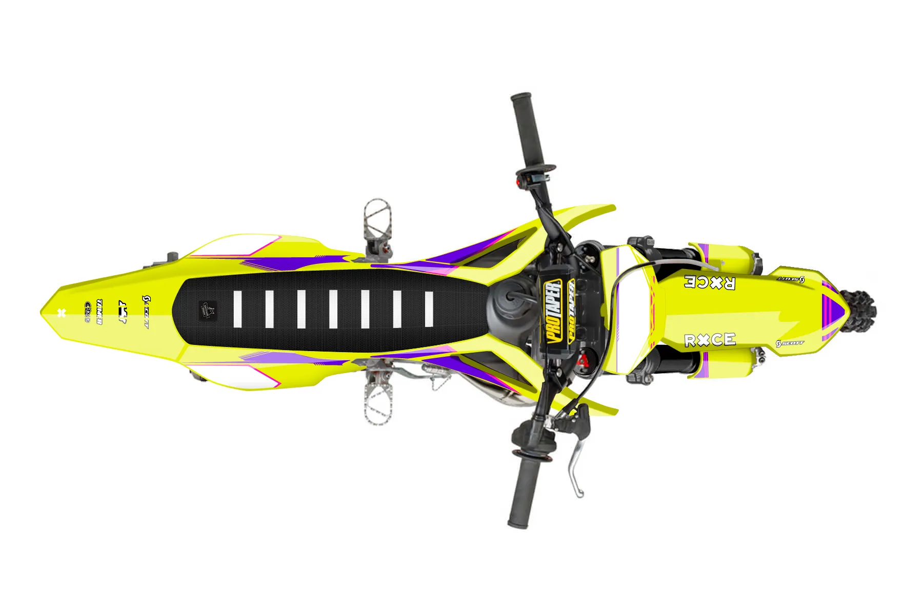 «Cobra 1» — готовый комплект графики серии Untucked для Cobra MX Graphics Cobra CX 50 FWE 2021. В комплекте: графика на бак и боковые облицовки, крылья (переднее и заднее), передний щиток, номерные таблички, защита вилки. Материал: ПВХ-винил 80 мкр с холодной ламинацией 300 мкр, общая толщина 380 мкр; покрытие глянцевое или матовое на выбор. Устойчив к UV-излучению, воде, бензину и мойке высокого давления. Клей акриловый на сольвентной основе — постоянный, для гибких пластиков. На простых поверхностях монтируется без нагрева; для сложных изгибов рекомендуем фен. Этот пресет можно заказать как есть или взять за основу в конструкторе: поменять цвета, добавить стартовый номер и свой бренд. Производство — 3–5 рабочих дней, доставка по России СДЭКом или Почтой, по СНГ — курьерскими службами.
