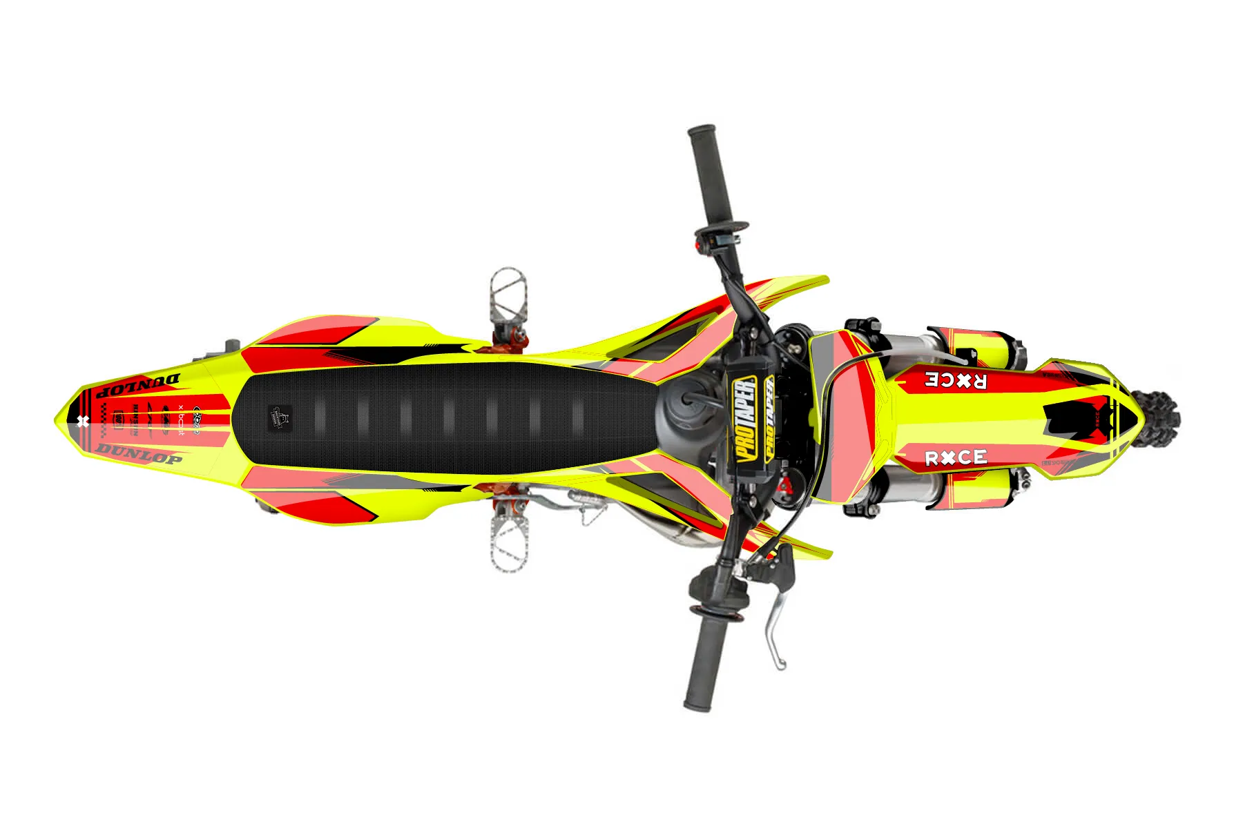 «cobra 91» — готовый комплект графики серии Untucked для Cobra MX Graphics Cobra CX 50 FWE 2021. В комплекте: графика на бак и боковые облицовки, крылья (переднее и заднее), передний щиток, номерные таблички, защита вилки. Материал: ПВХ-винил 80 мкр с холодной ламинацией 300 мкр, общая толщина 380 мкр; покрытие глянцевое или матовое на выбор. Устойчив к UV-излучению, воде, бензину и мойке высокого давления. Клей акриловый на сольвентной основе — постоянный, для гибких пластиков. На простых поверхностях монтируется без нагрева; для сложных изгибов рекомендуем фен. Этот пресет можно заказать как есть или взять за основу в конструкторе: поменять цвета, добавить стартовый номер и свой бренд. Производство — 3–5 рабочих дней, доставка по России СДЭКом или Почтой, по СНГ — курьерскими службами.