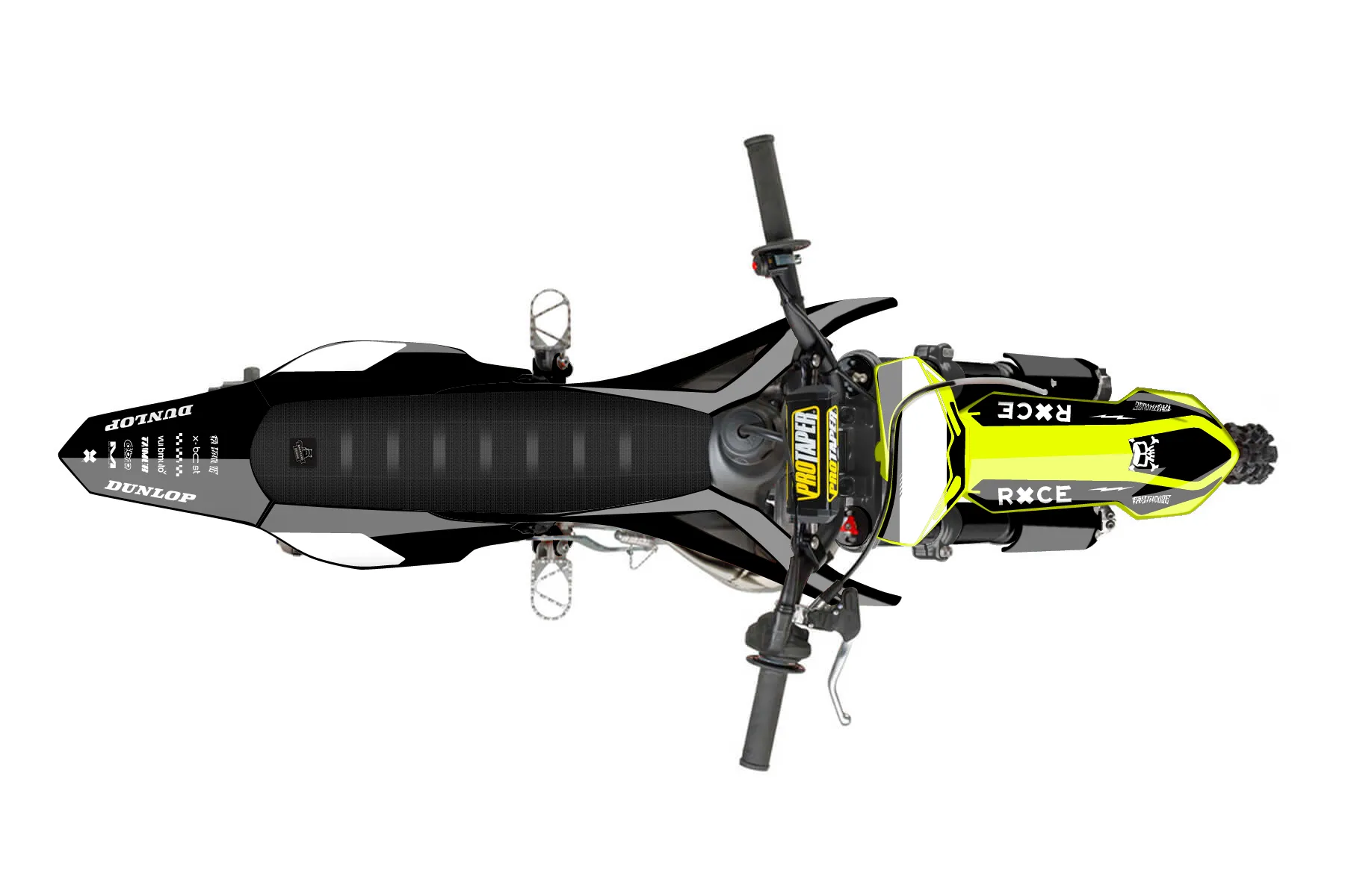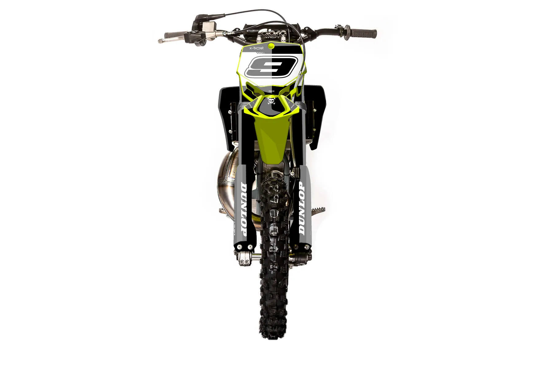«COBRA E BIKE GOLD» — готовый комплект графики серии Untucked для Cobra MX Graphics Cobra CX 50 FWE 2021. В комплекте: графика на бак и боковые облицовки, крылья (переднее и заднее), передний щиток, номерные таблички, защита вилки. Материал: ПВХ-винил 80 мкр с холодной ламинацией 300 мкр, общая толщина 380 мкр; покрытие глянцевое или матовое на выбор. Устойчив к UV-излучению, воде, бензину и мойке высокого давления. Клей акриловый на сольвентной основе — постоянный, для гибких пластиков. На простых поверхностях монтируется без нагрева; для сложных изгибов рекомендуем фен. Этот пресет можно заказать как есть или взять за основу в конструкторе: поменять цвета, добавить стартовый номер и свой бренд. Производство — 3–5 рабочих дней, доставка по России СДЭКом или Почтой, по СНГ — курьерскими службами.
