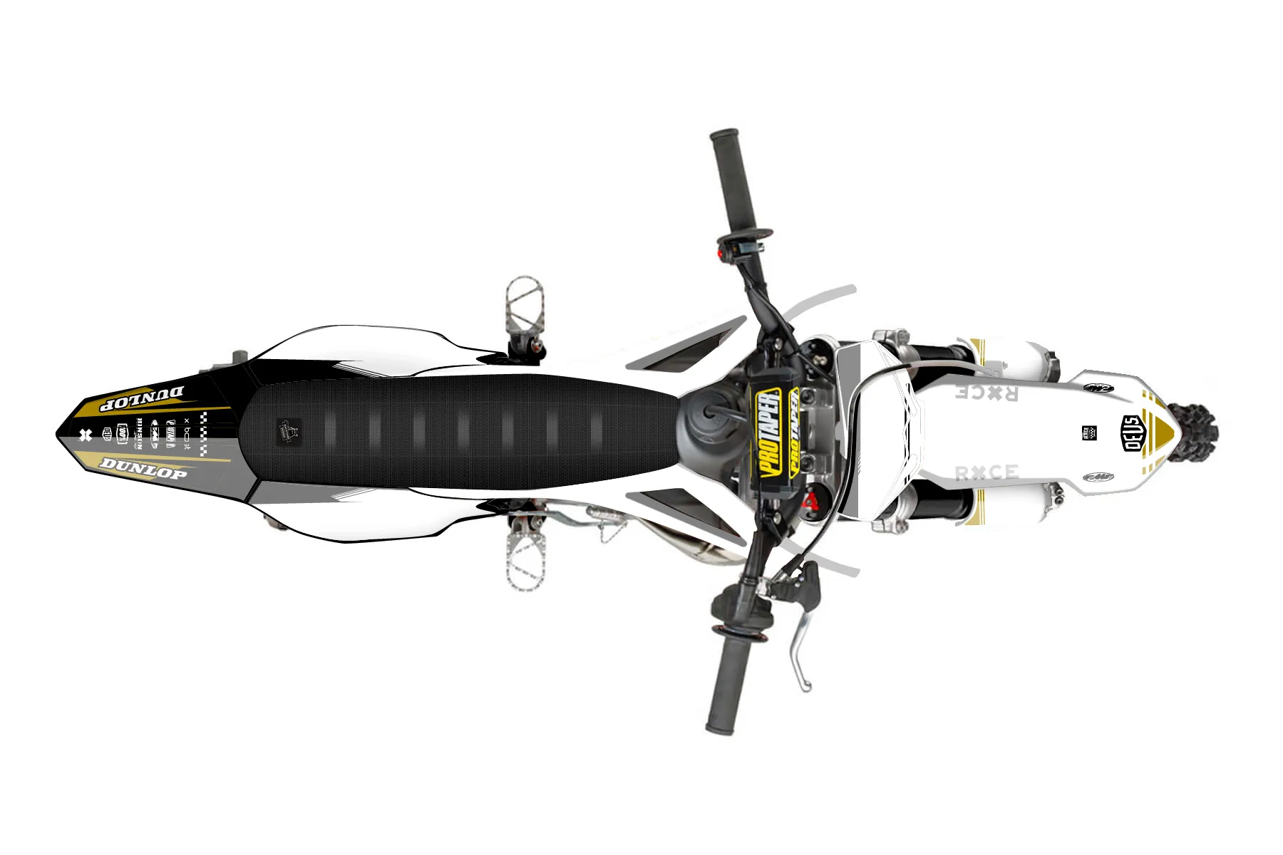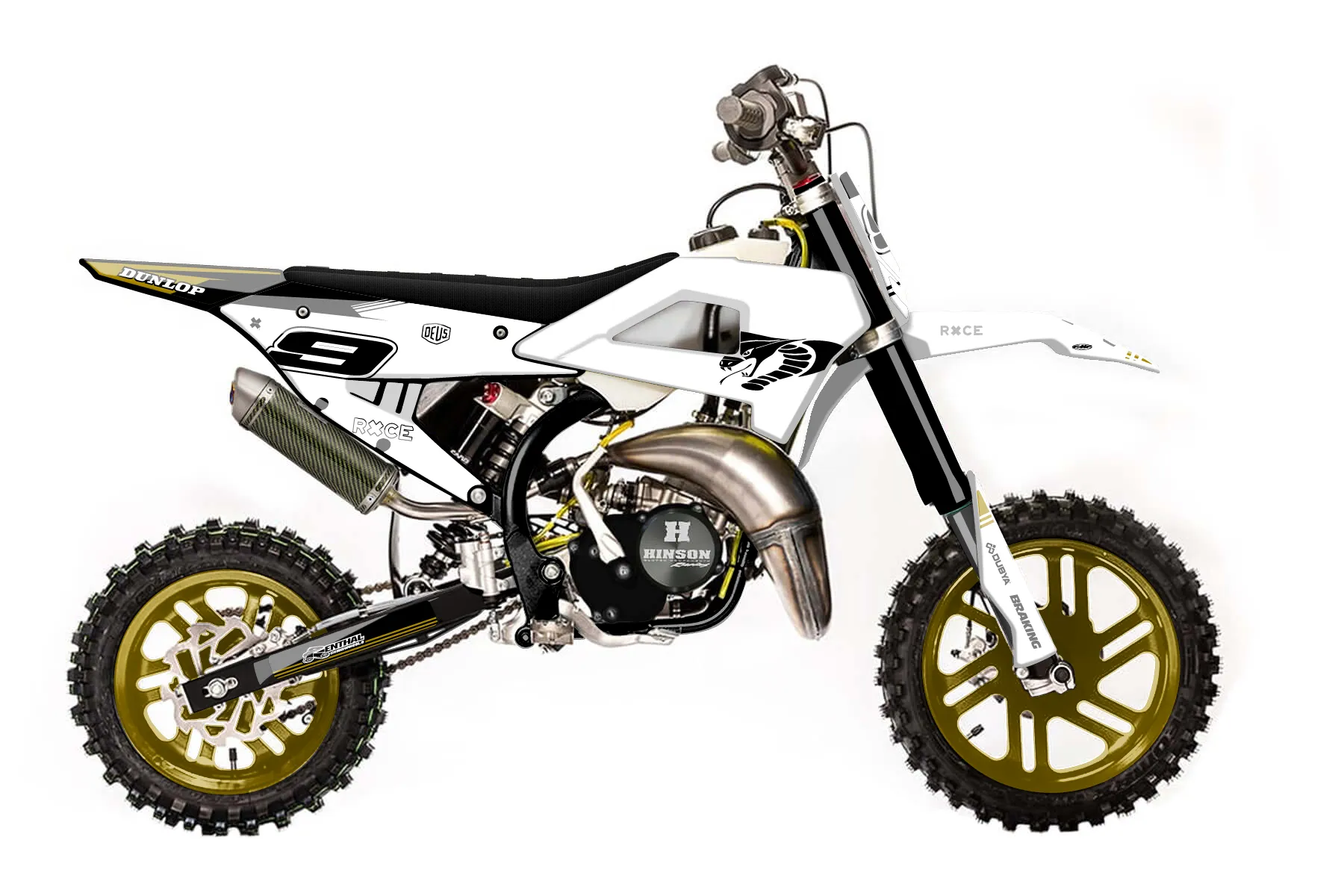 «CobraGOLD» — готовый комплект графики серии Untucked для Cobra MX Graphics Cobra CX 50 FWE 2021. В комплекте: графика на бак и боковые облицовки, крылья (переднее и заднее), передний щиток, номерные таблички, защита вилки. Материал: ПВХ-винил 80 мкр с холодной ламинацией 300 мкр, общая толщина 380 мкр; покрытие глянцевое или матовое на выбор. Устойчив к UV-излучению, воде, бензину и мойке высокого давления. Клей акриловый на сольвентной основе — постоянный, для гибких пластиков. На простых поверхностях монтируется без нагрева; для сложных изгибов рекомендуем фен. Этот пресет можно заказать как есть или взять за основу в конструкторе: поменять цвета, добавить стартовый номер и свой бренд. Производство — 3–5 рабочих дней, доставка по России СДЭКом или Почтой, по СНГ — курьерскими службами.