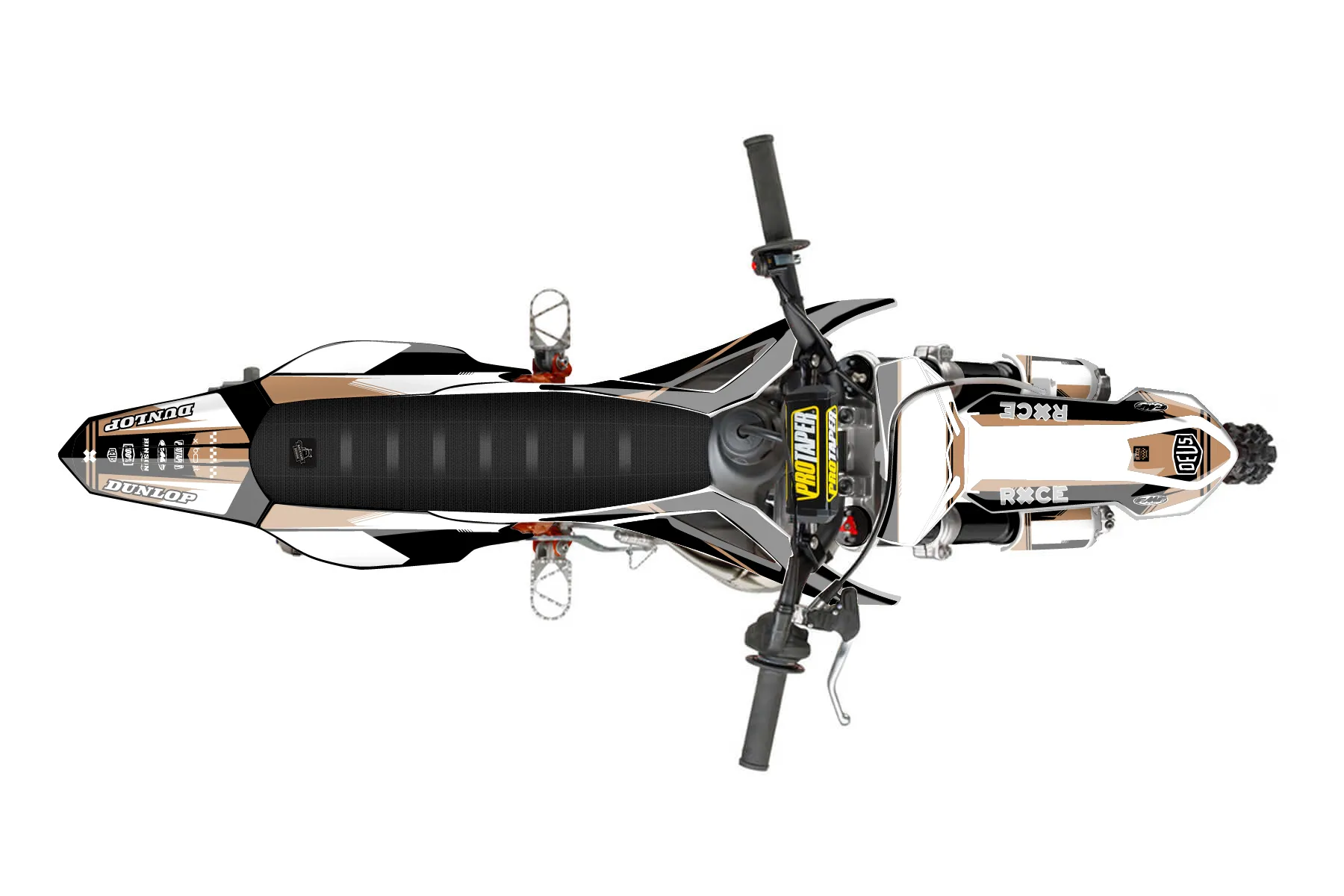 «CustomDesign» — готовый комплект графики серии Untucked для Cobra MX Graphics Cobra CX 50 FWE 2021. В комплекте: графика на бак и боковые облицовки, крылья (переднее и заднее), передний щиток, номерные таблички, защита вилки. Материал: ПВХ-винил 80 мкр с холодной ламинацией 300 мкр, общая толщина 380 мкр; покрытие глянцевое или матовое на выбор. Устойчив к UV-излучению, воде, бензину и мойке высокого давления. Клей акриловый на сольвентной основе — постоянный, для гибких пластиков. На простых поверхностях монтируется без нагрева; для сложных изгибов рекомендуем фен. Этот пресет можно заказать как есть или взять за основу в конструкторе: поменять цвета, добавить стартовый номер и свой бренд. Производство — 3–5 рабочих дней, доставка по России СДЭКом или Почтой, по СНГ — курьерскими службами.
