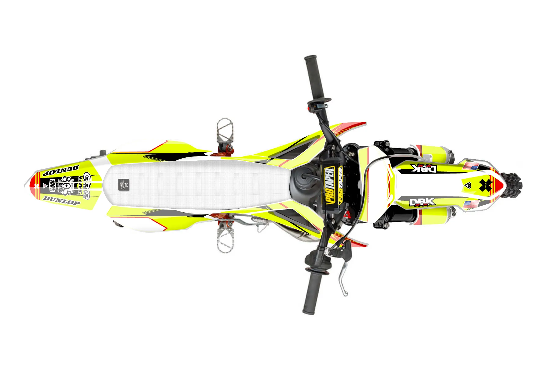 «neon fwe 443» — готовый комплект графики серии Untucked для Cobra MX Graphics Cobra CX 50 FWE 2021. В комплекте: графика на бак и боковые облицовки, крылья (переднее и заднее), передний щиток, номерные таблички, защита вилки. Материал: ПВХ-винил 80 мкр с холодной ламинацией 300 мкр, общая толщина 380 мкр; покрытие глянцевое или матовое на выбор. Устойчив к UV-излучению, воде, бензину и мойке высокого давления. Клей акриловый на сольвентной основе — постоянный, для гибких пластиков. На простых поверхностях монтируется без нагрева; для сложных изгибов рекомендуем фен. Этот пресет можно заказать как есть или взять за основу в конструкторе: поменять цвета, добавить стартовый номер и свой бренд. Производство — 3–5 рабочих дней, доставка по России СДЭКом или Почтой, по СНГ — курьерскими службами.