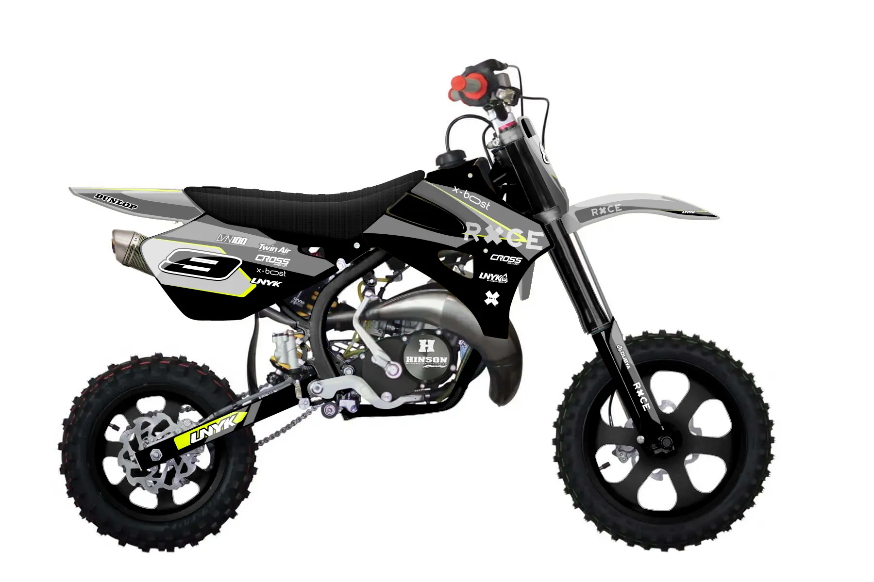 «Lucent Neon» — готовый комплект графики серии Flow для Cobra MX Graphics Cobra CX50 Sr King 2010. В комплекте: графика на бак и боковые облицовки, крылья (переднее и заднее), передний щиток, номерные таблички, защита вилки. Материал: ПВХ-винил 80 мкр с холодной ламинацией 300 мкр, общая толщина 380 мкр; покрытие глянцевое или матовое на выбор. Устойчив к UV-излучению, воде, бензину и мойке высокого давления. Клей акриловый на сольвентной основе — постоянный, для гибких пластиков. На простых поверхностях монтируется без нагрева; для сложных изгибов рекомендуем фен. Этот пресет можно заказать как есть или взять за основу в конструкторе: поменять цвета, добавить стартовый номер и свой бренд. Производство — 3–5 рабочих дней, доставка по России СДЭКом или Почтой, по СНГ — курьерскими службами.